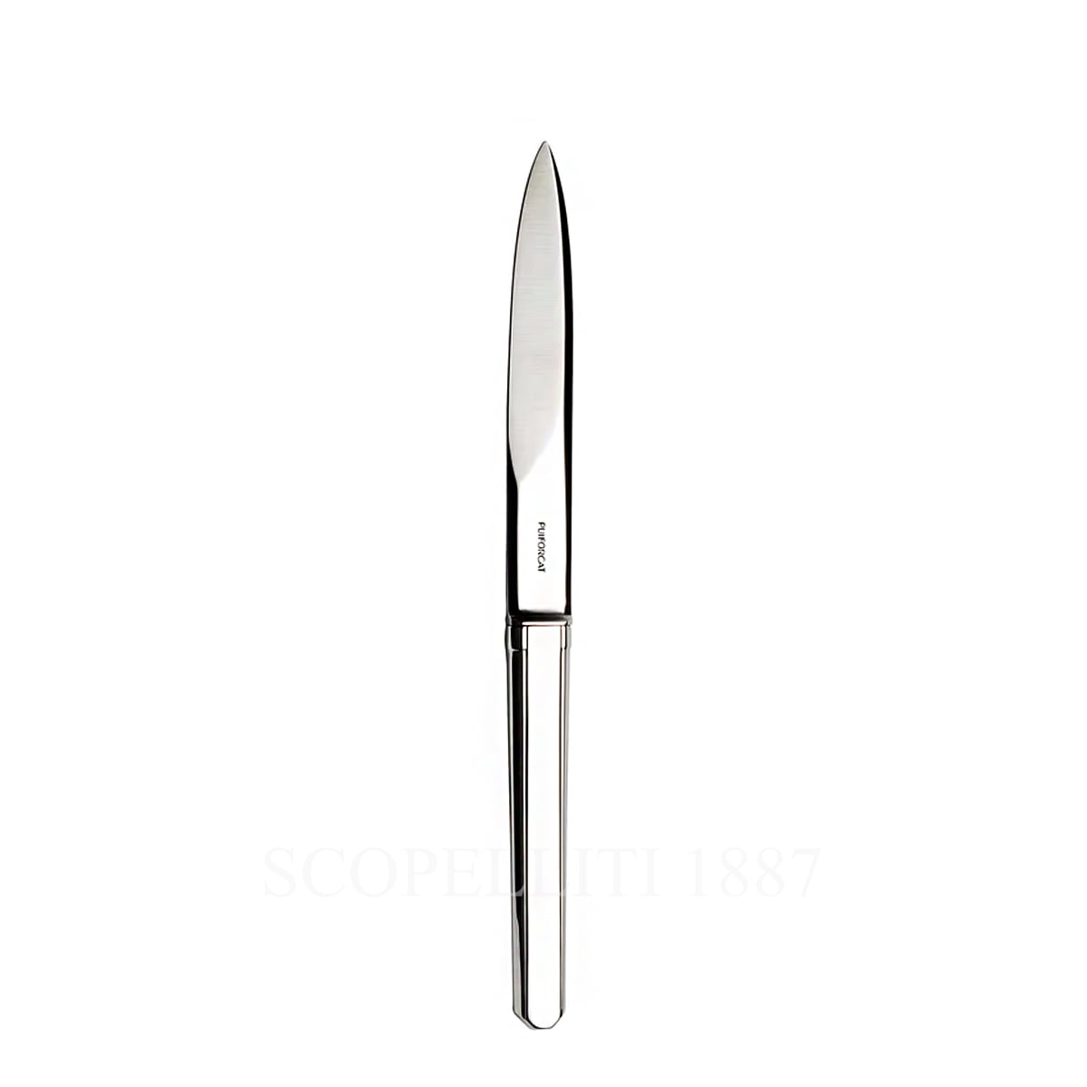 Puiforcat Guethary stainless steel cutlery by the famous French silversmith Puiforcat is considered a modern classic design. This model first appeared in 1926 and now has been realized in highest quality stainless steel making it perfect flarware for everyday life. The sophistication of Puiforcat’s design lies in its solid but very harmonious form. Jean Puiforcat applied the “golden section” technique for this cutlery, usually used in art and painting, which is considered the epitome of aesthetics and harmony. The three-pronged fork has an incredibly modern look. To emphasize the unity of the design, the handle of the fork has been machined from a single piece of metal, thus producing a beautiful and solid piece of cutlery. A new design feature of the spoon is the perfect oval shape of the bowl.