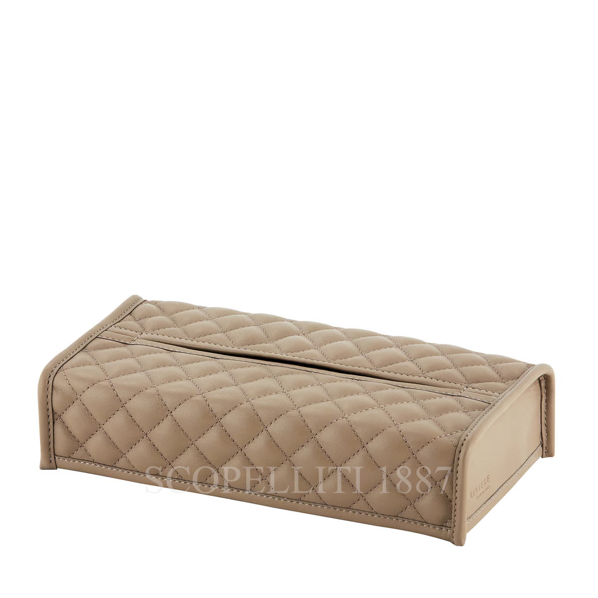 Riviere Vanity rectangular tissue box cover, blush taupe leather. Smooth nappa leather, completely handmade in Italy. Please note that these bath accessories from Riviere should be protected from constant humidity. Size: L 23 x W 11.5 x H 5 cm Designed and manufactured in Milan, and part of the Giobagnara group since 2022, Riviere is a tale of luxury that features all the very best of Italian know-how. Riviere produces sophisticated interior decoration accessories, handcrafted by the best artisans, whose skills have been handed down from generations. THE PRESTIGE OF MATERIALS IN EXCEPTIONALLY REFINED INTERPRETATIONS The appeal of Riviere lies in perfect quality, accurate details, sophisticated lines and an extraordinary combination of refined materials and finishes: superb leathers, hand-polished lacquering, precious wood essences, carved acrylic crystal, gold or silver metal accents, all perfectly matched together to create unique. Exclusive and exquisitely detailed pieces. EACH OBJECT TELLS A STORY OF SKILLFUL PERFECTION The combination of design, quality and unique character with the most innovative solutions of contemporary living, make of the collection an excellence whose style is immediately perceived and recognizable. Riviere products are conceived to cater for a discerning clientele not only looking for the utmost quality but also for a sophisticated style to reflect their elegance, art of living and taste. Made of the finest Italian calf leather and chrome-plated brass, the soap dispenser, toothbrush holder, leather box and boxes are not only necessary utensils, but also optical highlights.