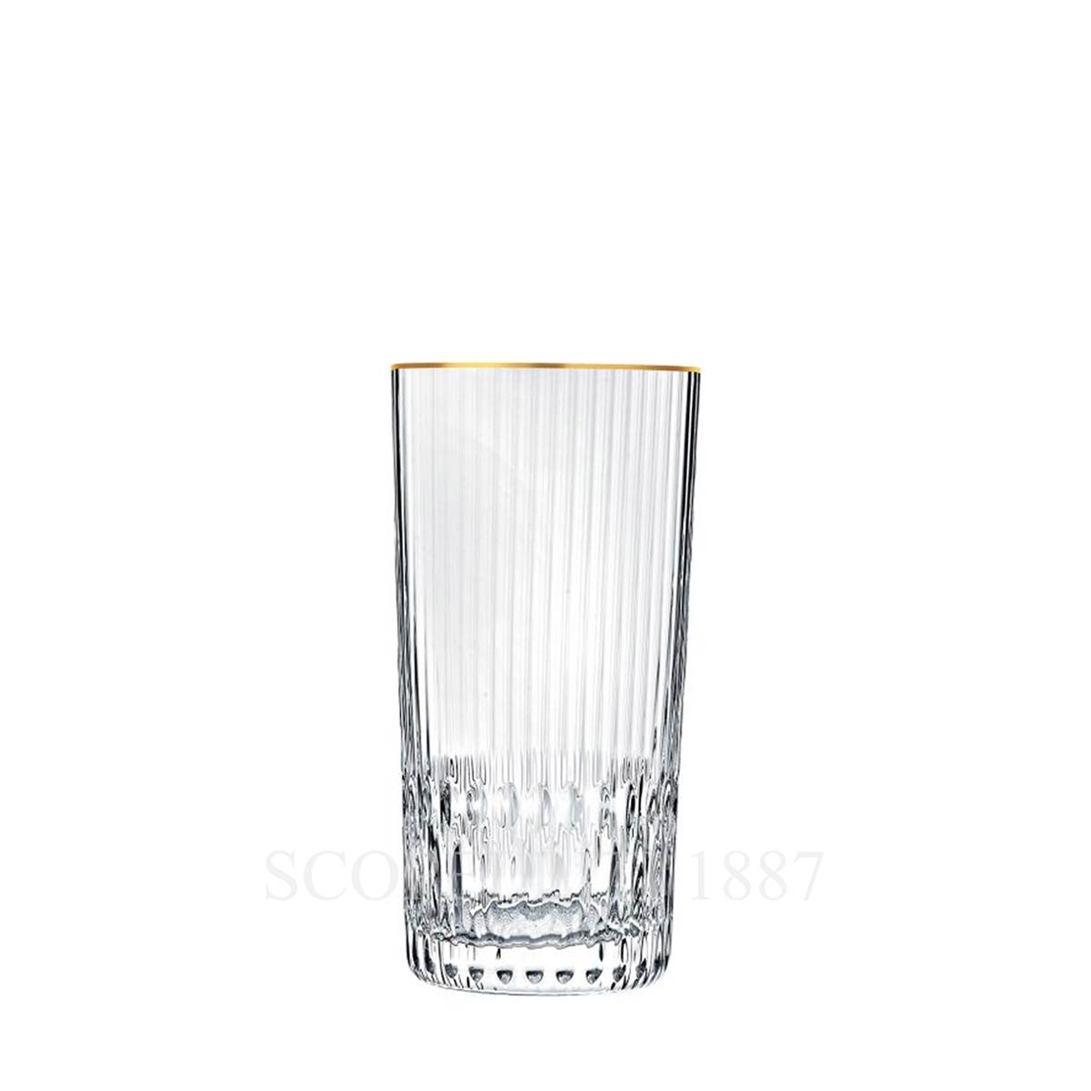 The Saint Louis Apollo Gold Large Highball Glass is a refined expression of French crystal artistry. Mouthblown and hand-cut with a 24-carat gilded rim, it refracts light beautifully, creating a luxurious and elegant table presence. Part of the prestigious Apollo Gold collection, this highball glass combines over 430 years of Saint-Louis heritage with contemporary design. Ideal for cocktails, spirits, or elegant refreshments, it exemplifies the perfect balance of craftsmanship, tradition, and French luxury.