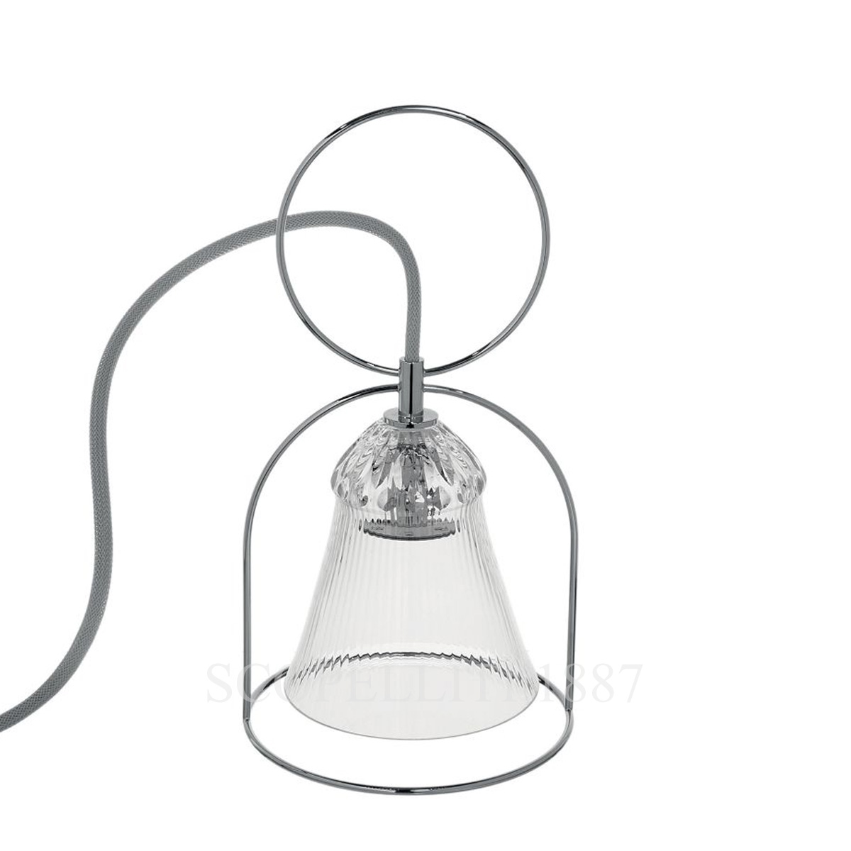 The Saint Louis Apollo Table Lamp perfectly blends artisanal tradition with modern lighting design. Crafted from exquisite hand-blown crystal, this lamp is an exclusive piece from Saint Louis, a manufacture celebrated for its mastery in crystal craftsmanship since 1586. Born from the classic motif of the Thistle collection, the Apollo line presents extreme refinement. The fluidity of the lines and the finesse of the engraving clearly express the essential liquid nature of crystal. Fine Venetian ribs and the surprising nic-nac cut flow down the lamp like a cascade of pure water, highlighting its luminous beauty. Godefroy de Virieu and Stefania di Petrillo transformed a signature Apollo glass into a luminous bell, creating this elegant table lamp. Ideal for decorating any space, Apollo illuminates with a warm white glow, combining artistic craftsmanship with contemporary elegance.