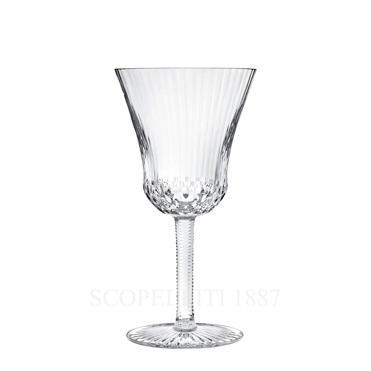 The Saint Louis Apollo Burgundy Wine Crystal Glass is inspired by the classic Thistle pattern, featuring diaphanous vertical lines and elegant Venetian-style stripes. Its fine engraving and flowing contours highlight the pure essence of crystal, while the optional 24-carat gold rim adds a luxurious touch. This wine glass combines simplicity with sophistication, transmitting elegance and refinement to every occasion. Its delicate design makes it almost too beautiful to use, yet it perfectly enhances the enjoyment of fine Burgundy wines.