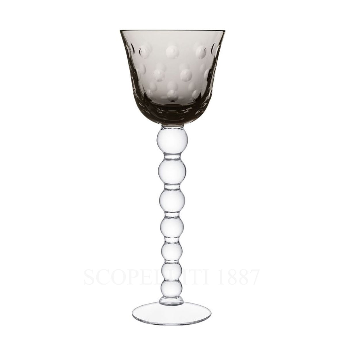 Saint Louis Bubbles crystal Hock Flannel-Grey. The Saint-Louis hock glasses can either be used as a white wine glass or a water glass. A mischievous stack of crystal marbles on the stem and bubbles dotting the parison, are the hallmarks of this collection. Gift box included.