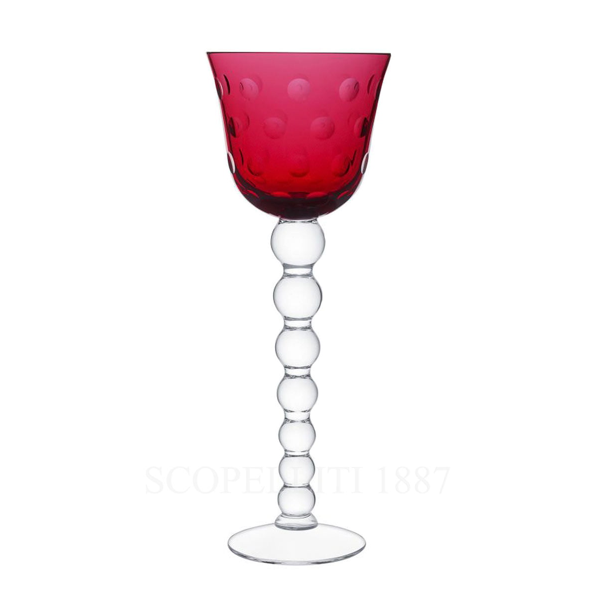 Saint Louis Bubbles crystal Hock Red. The Saint-Louis hock glasses can either be used as a white wine glass or a water glass. A mischievous stack of crystal marbles on the stem and bubbles dotting the parison, are the hallmarks of this collection. Gift box included.