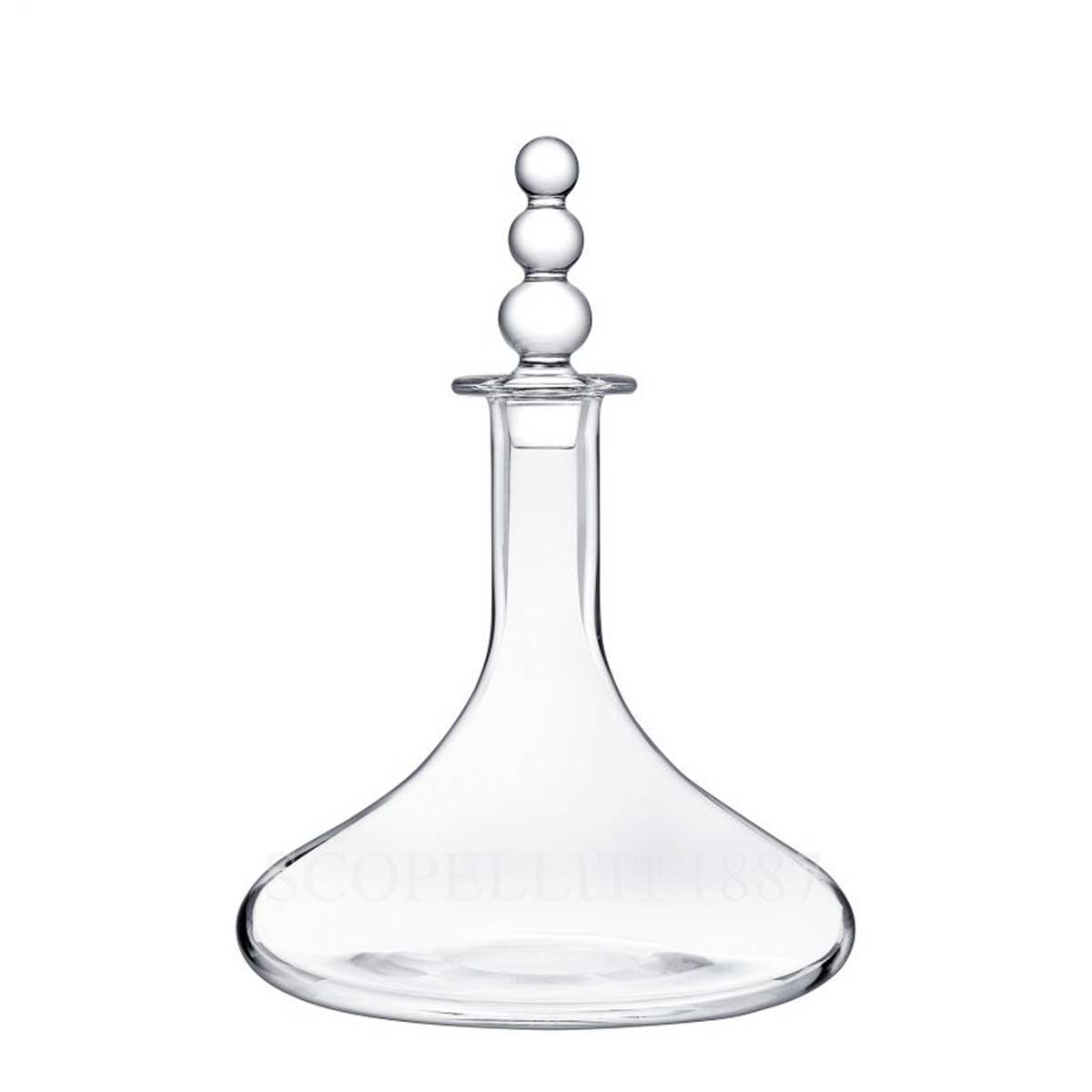 The Saint Louis Bubbles Wine Decanter is a masterful expression of French crystal craftsmanship. Part of the iconic “Bubbles” collection, it features the signature dotted engraving, with hand-cut glass beads arranged in descending sizes to create a striking optical effect while providing a comfortable and secure grip.