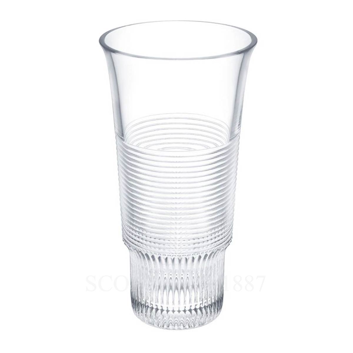 The Saint Louis Cadence Large Vase is a remarkable piece of fine French crystal, designed by Pierre Charpin for the prestigious Cadence collection. Its refined design features elegant vertical cords on the base and horizontal cords on the body, creating a harmonious interplay of lines that evoke rhythm and precision.