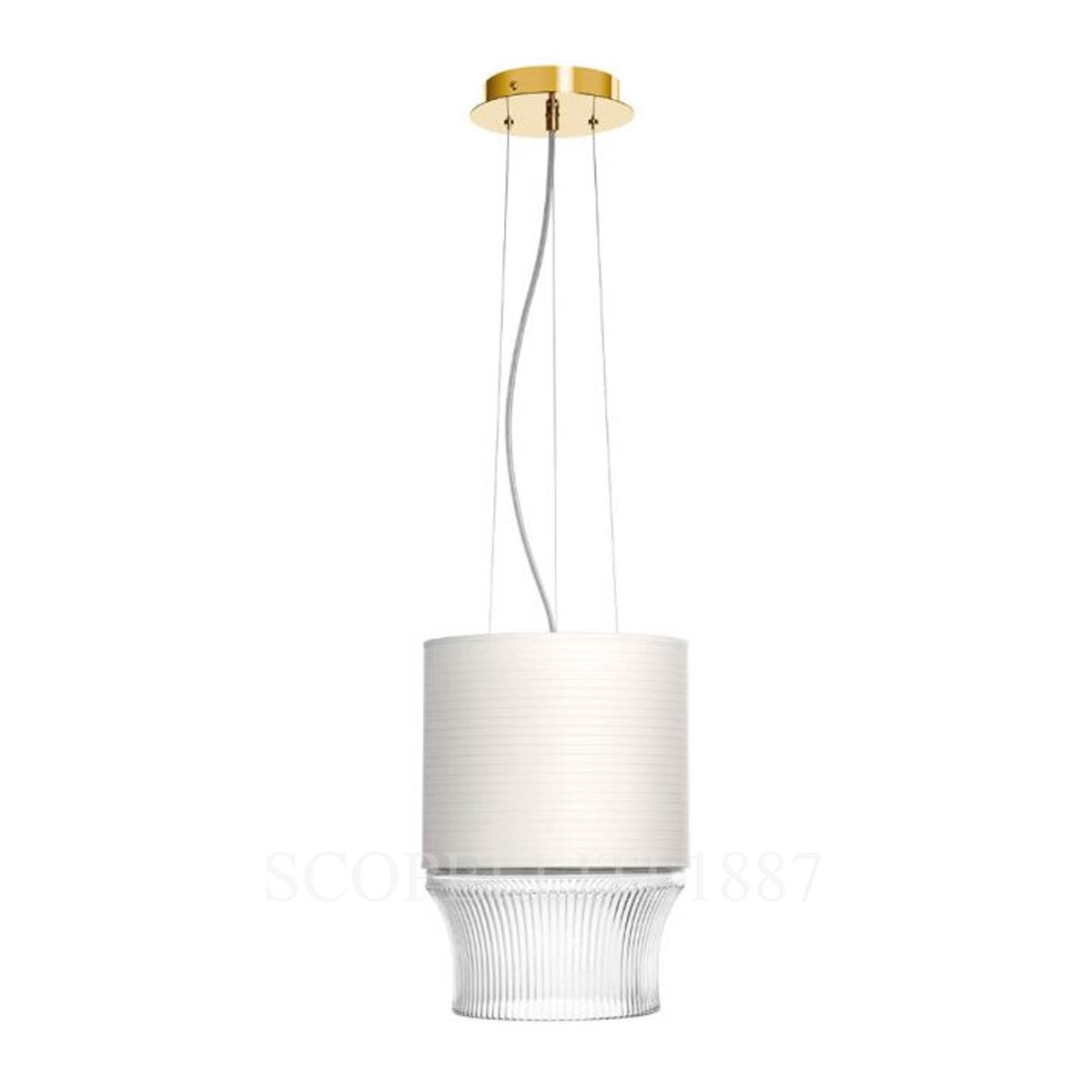 The Saint Louis Cadence Paper Lampshade Golden Finish Large Pendant Light is a refined fusion of crystal brilliance and soft illumination, designed to elevate any interior. Part of the Cadence collection by Pierre Charpin, it features rhythmic horizontal and vertical crystal cuts, interpreting the gestural vocabulary of Saint Louis artisans across generations.