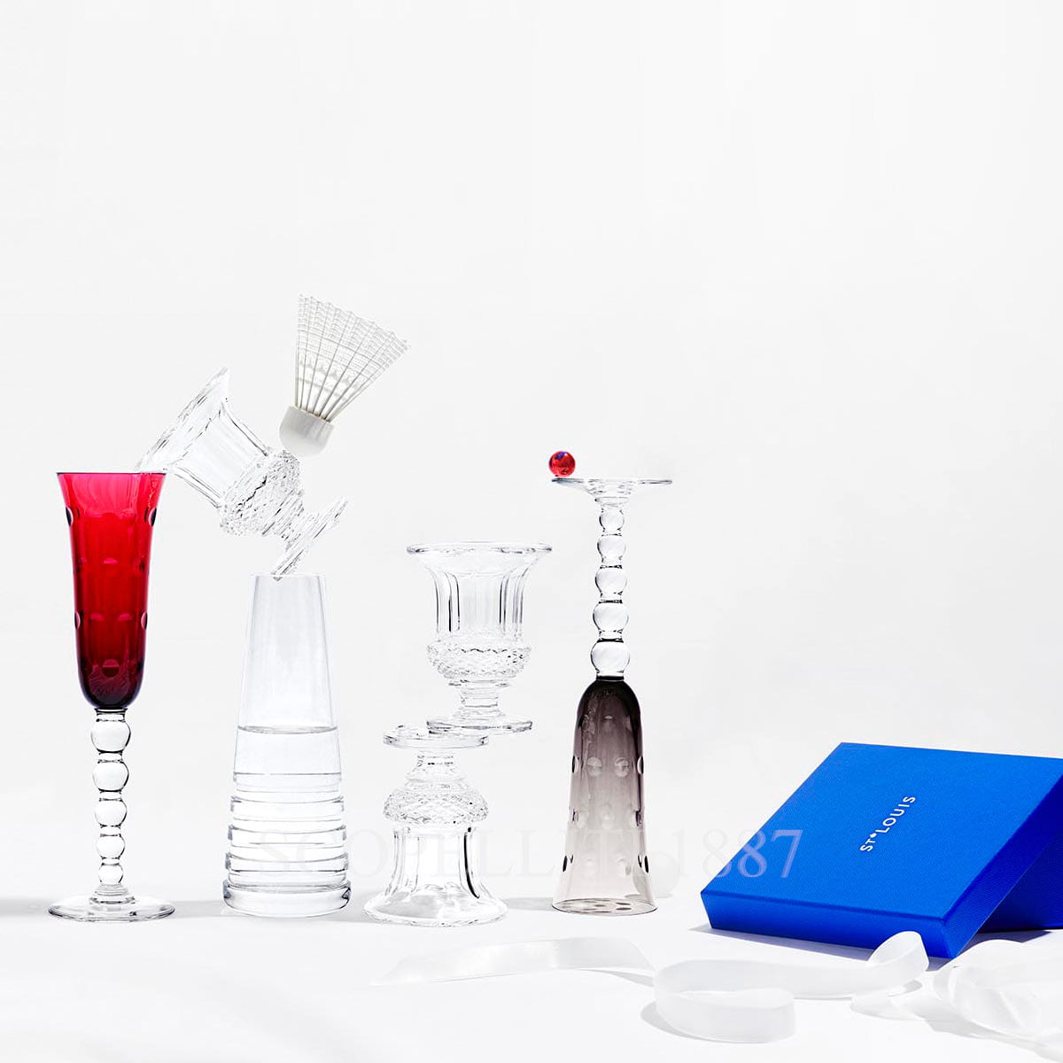 Vibrant and sensual, designed as part of a vast service of shapes and uses, from tableware to bar patterns, Bubbles reinvigorated the art of creation of clear and coloured crystal within Saint-Louis. Sparkling: The “Bubbles” Champagne flutes by Saint-Louis are the right glasses for special occasions. A mischievous stack of crystal marbles on the stem and bubbles, dotting the parison, are the hallmarks of this original service.
