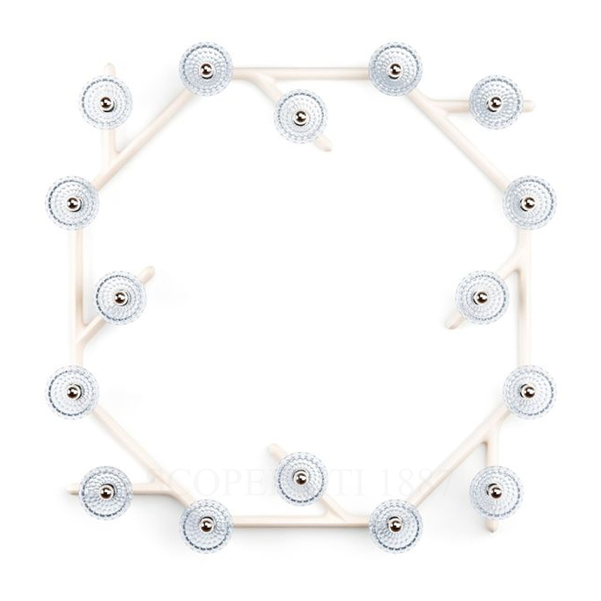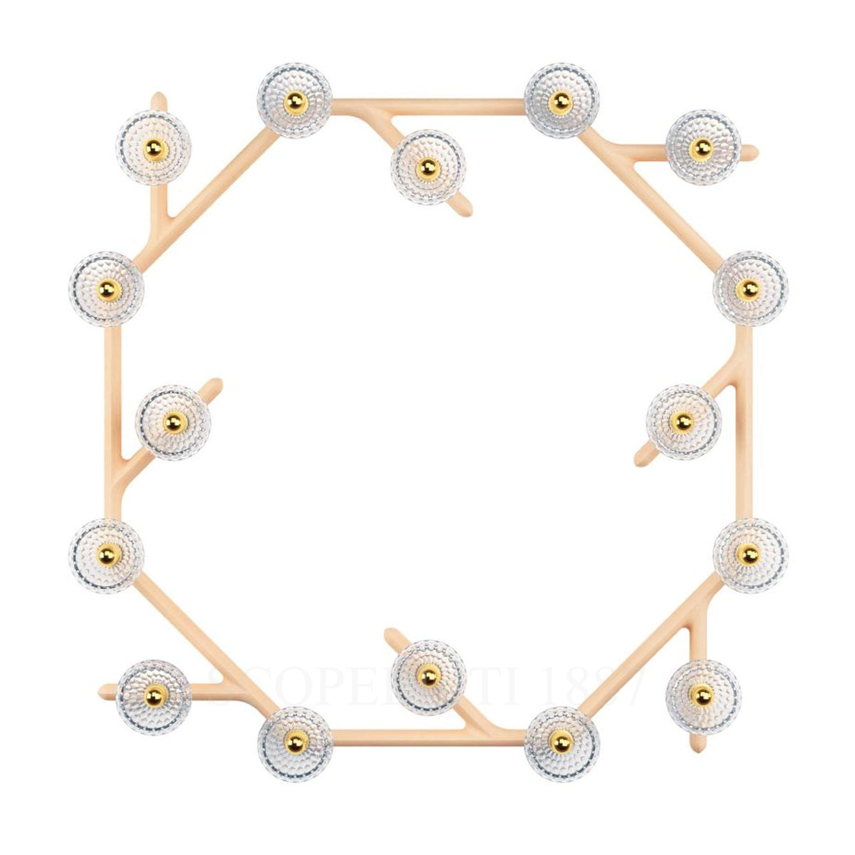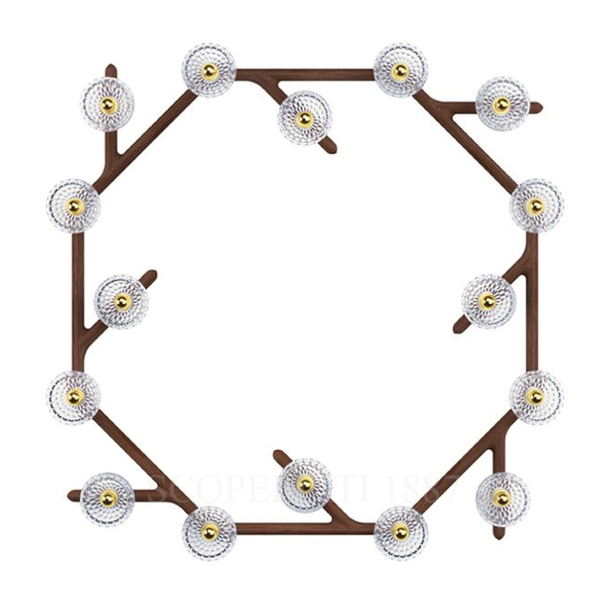 The Saint Louis Folia 16 Light Circular Wood Sconce redefines modern luxury lighting with its innovative modular design. Versatile and elegant, this sconce can function as a wall light, ceiling light, or pendant, with suspension options via offset cables or direct wall installation, seamlessly adapting to diverse interior styles. Available in three wood finishes—Clear Wood, Dark Wood, and White Wood—each version can be paired with brushed brass or chrome-plated metal accents, allowing complete customization to match your décor. Clear crystal elements enhance the brilliance of the light, reflecting Saint Louis’s mastery in crystal craftsmanship.