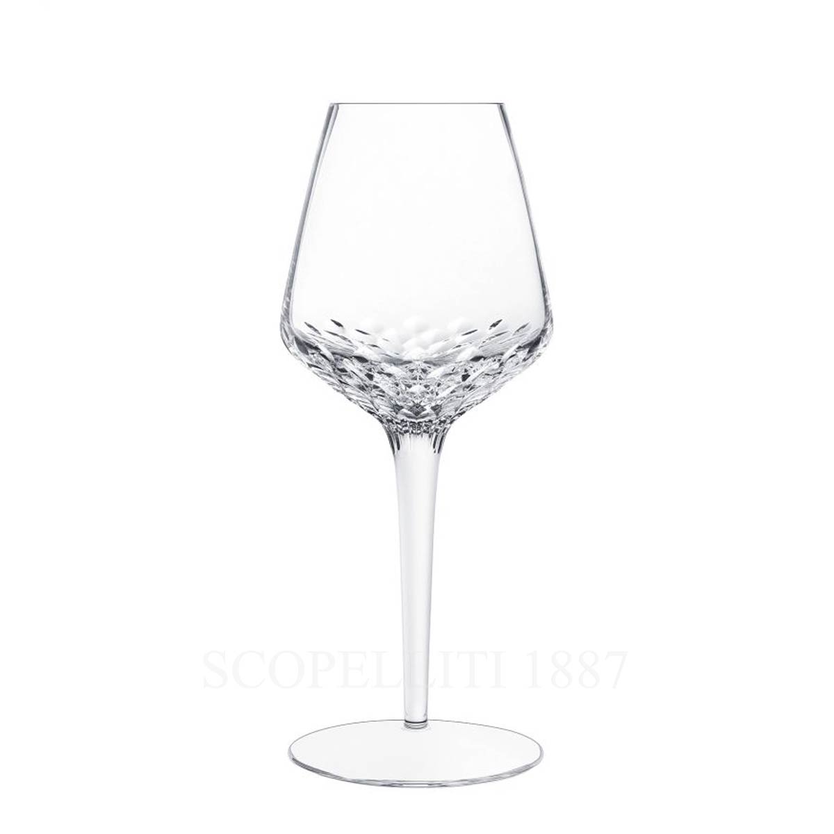 The Saint Louis Folia Wine Glass n°4 is a refined example of French crystal craftsmanship. Mouthblown and meticulously hand-cut, it captures and reflects light with exceptional brilliance, exemplifying the elegance and technical mastery of Saint-Louis. Designed by Noé Duchaufour-Lawrance, the Folia collection is inspired by the Moselle Forest, blending natural beauty with contemporary crystal artistry.