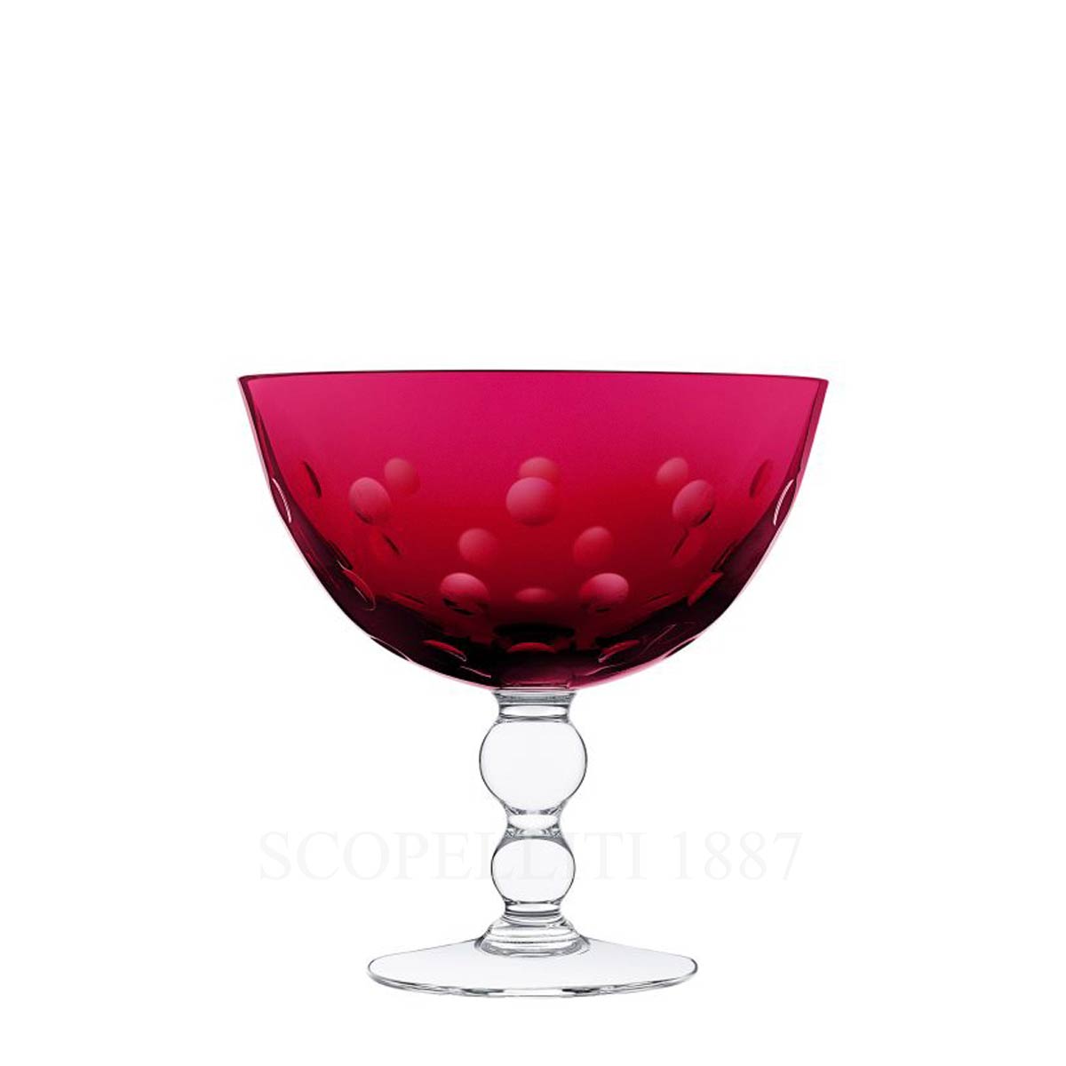 The Saint Louis Footed Cup Bubbles Red is a luxurious piece of hand-engraved crystal. The Saint Louis Footed Cup Bubbles Red combines contemporary design with the glamorous style and precision craftsmanship of Saint-Louis, reflecting the refinement of France’s oldest cristallerie. Perfect as a standalone piece or to complement the Bubbles collection, the Saint Louis Footed Cup Bubbles Red adds elegance and sophistication to any table or bar setting. Its precise hand-engraving highlights the artistry and brilliance of Saint-Louis crystal, making it a collectible and functional piece.