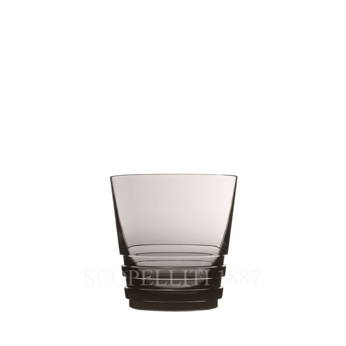Saint Louis Oxymore Flannel-Grey Medium Tumbler. The Oxymore collection stands out thanks to its geometric architecture and its clean graphic features, that make it a contemporary set, compatible with many decorative styles. A contemporary classic. Mouthblown, hand-cut crystal glass, gilded. Hand-wash recommended.