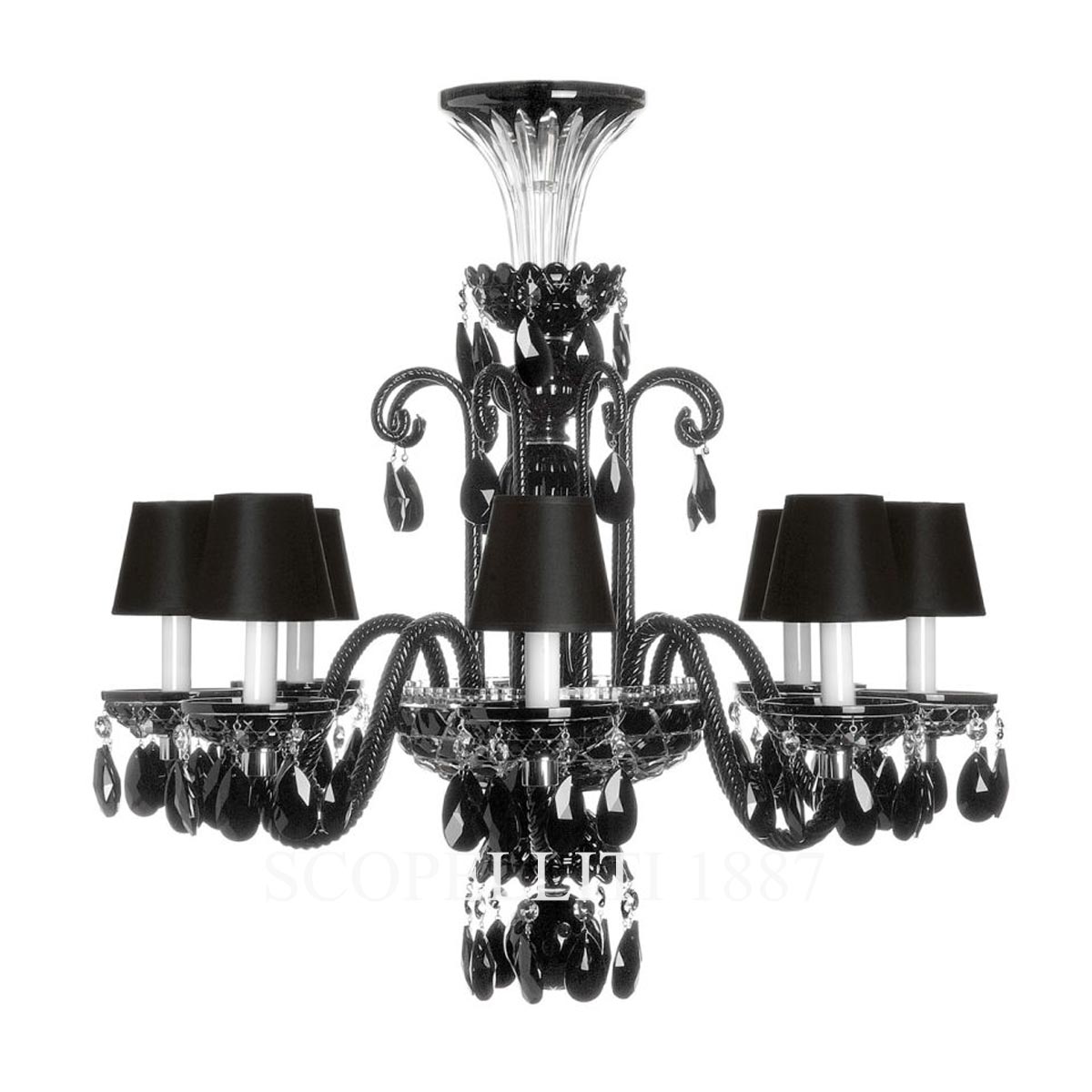 The Saint Louis Royal 8 Light Chandelier exudes timeless elegance, combining heritage craftsmanship with contemporary sophistication. Featuring a distinctive crystal design and a carefully curated color palette, this chandelier transforms any interior into a space of refined beauty. Available in striking colors such as amethyst, chartreuse green, flannel grey, and more, each chandelier can be fully personalized. Customers may also adjust the shape and color of the hanging crystals, and add lampshades to create a piece uniquely suited to their vision. Originally conceived in rare black crystal—a signature Saint Louis hue dating back to the 19th century—this chandelier exemplifies the Maison’s mastery of color and design.