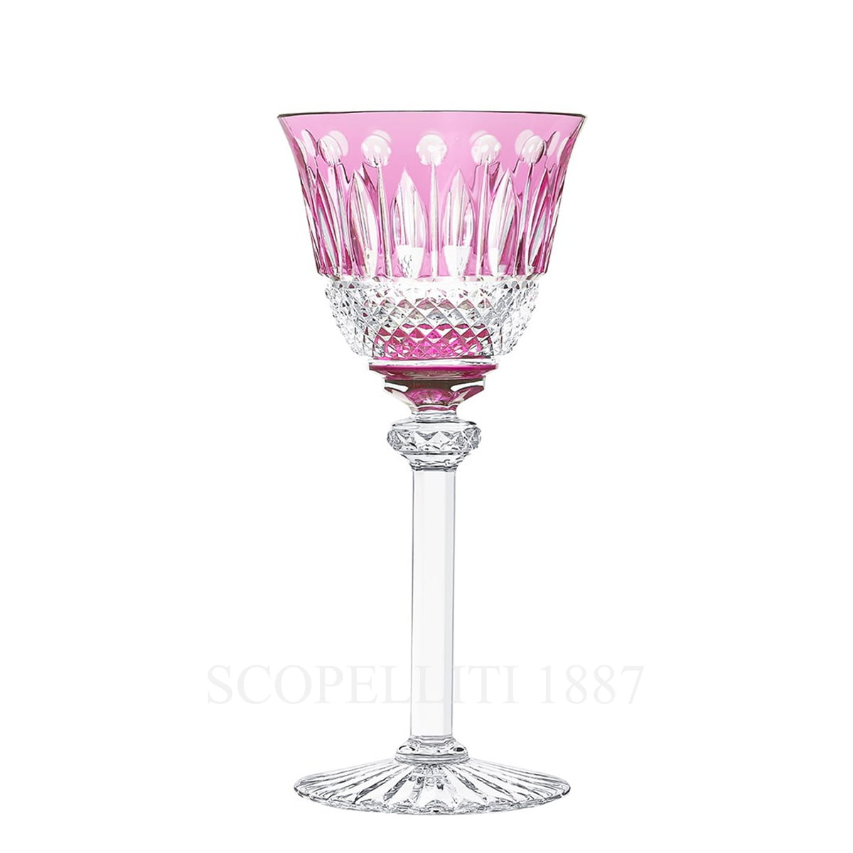 The goblets of these hock glasses gleam in their wonderful colours. They can be used as wine or water glasses. The attention given to detail in the cutting process as facet cutting, ball cutting and diamond cutting are what makes this classic line from the year 1928 into one of the most coveted creations in crystal glass craftsmanship.
