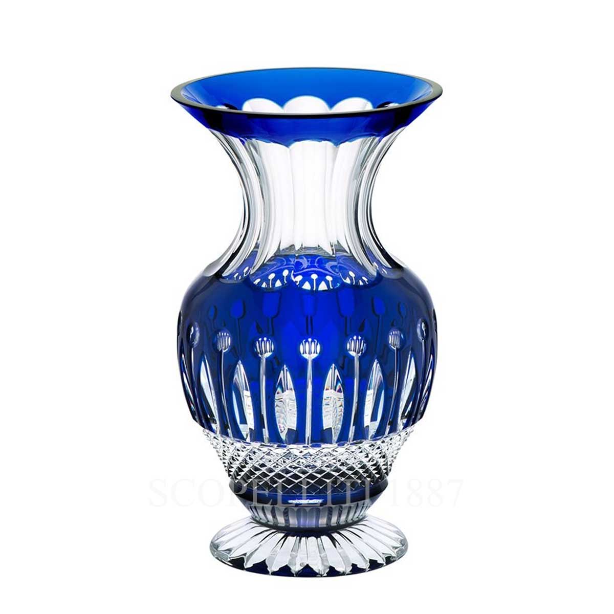 Saint Louis Tommy Crystal Vase Blue in mouthblown, hand-cut crystal glass. Gift box included.