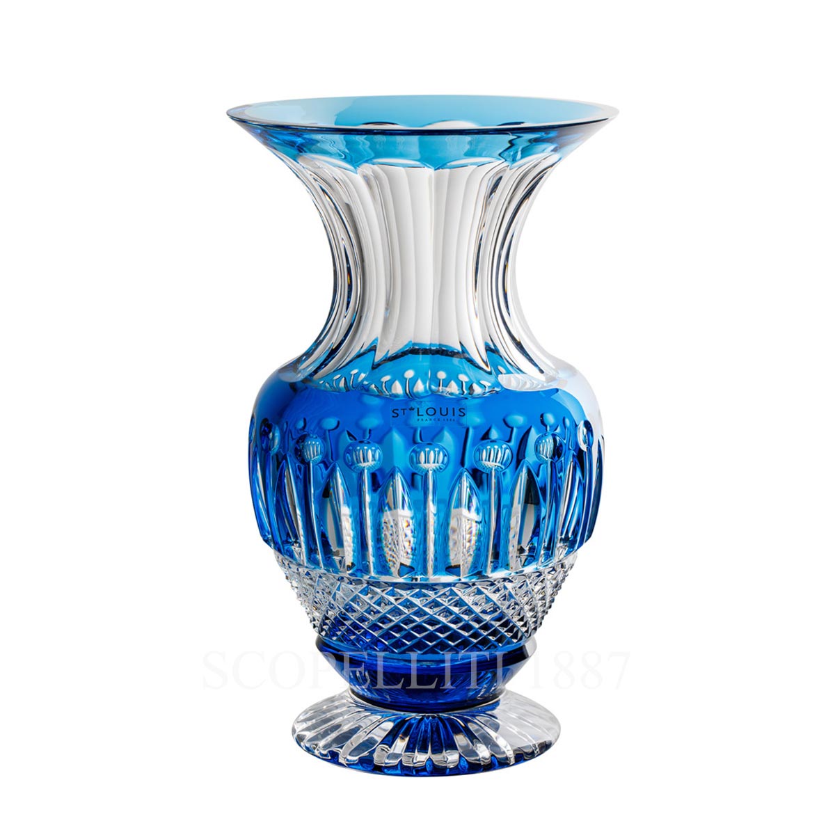 Saint Louis Tommy Crystal Vase Light Blue in mouthblown, hand-cut crystal glass. Gift box included.