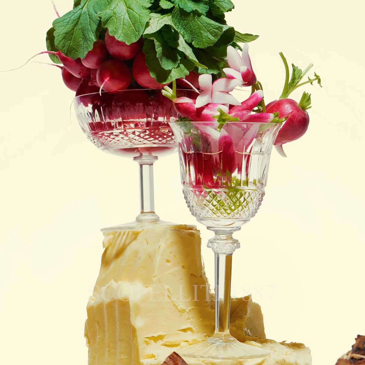 The reputation of Tommy is based on a legendary dinner in the year 1928 held in the Hall of Mirrors in the Chateau de Versailles on the occasion of a visit by King George VI; each of the places at the table for guests was set with eleven glasses from the “Tommy” series. The production of these glasses still goes on today and each glass takes ten days to make; ten glassblowers are needed to create the shape and five cutters are required to complete the decoration. From its star base to its diamond cuts, bevels, chains, and bead-cut hurricanes, this collection showcases all the craftsmanship and dextrous brio of master glassworkers. What if the exception of a dinner became an everyday celebration?