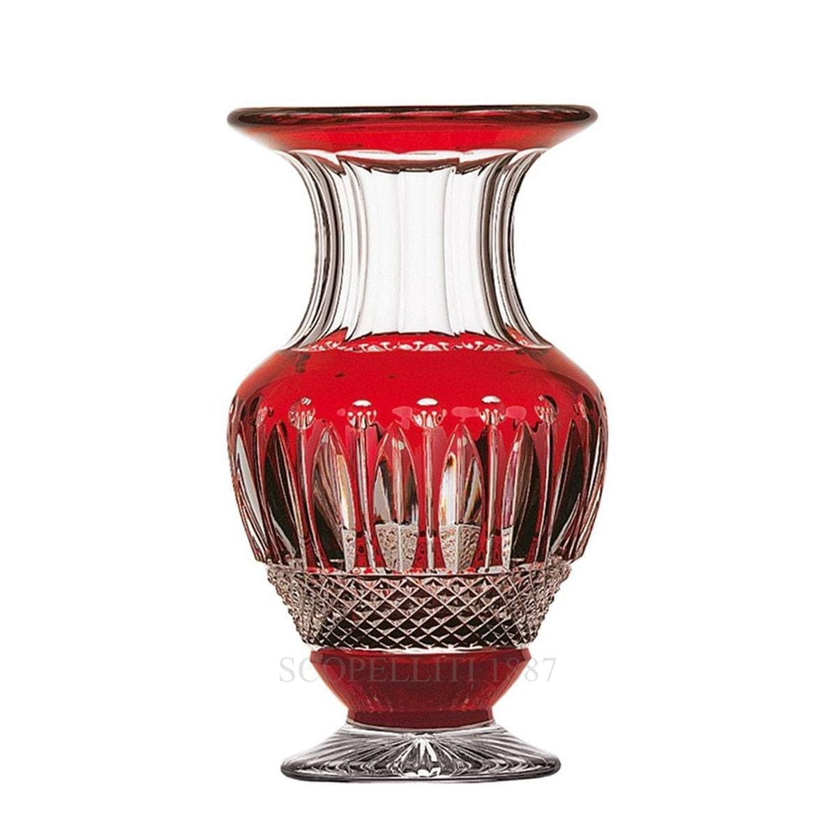 The Saint Louis Tommy Red Crystal Vase is a timeless example of Saint-Louis craftsmanship. From its star-shaped base to the sparkling glints of diamond, bevel, pearl, and rim cuts, this vase embodies the elegance and precision of French crystal artistry. Mouthblown and hand-cut using three traditional techniques—facet cutting, ball cutting, and diamond cutting—each vase is meticulously crafted in France’s oldest crystal factory.