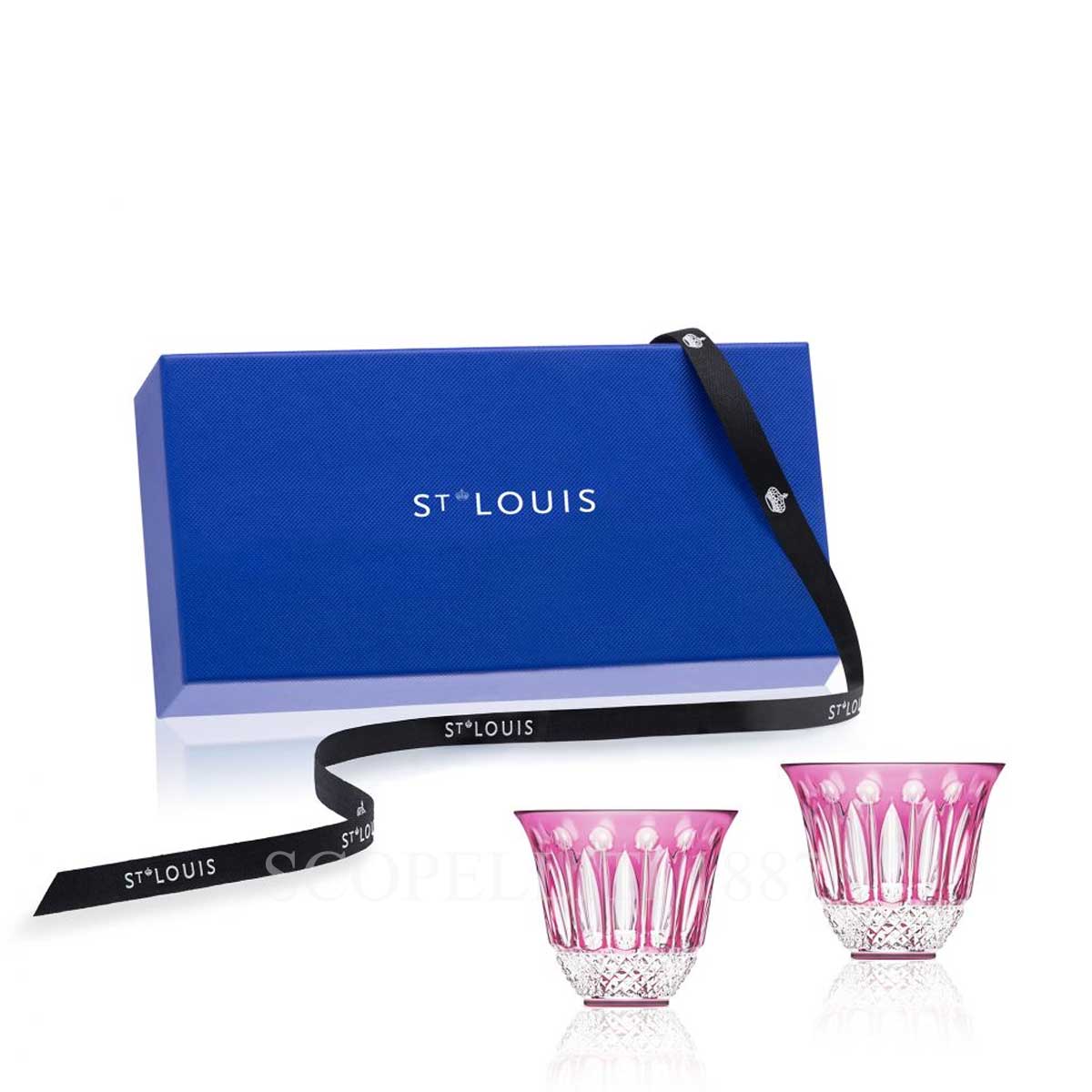 Saint Louis Tommy Set of 2 Flared Tumblers Amethyst in mouthblown, hand-cut crystal glass. Gift box included.