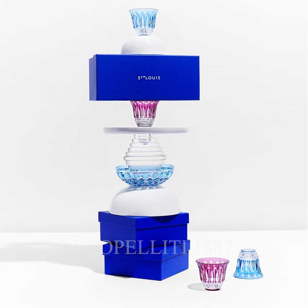 The reputation of Tommy is based on a legendary dinner in the year 1928 held in the Hall of Mirrors in the Chateau de Versailles on the occasion of a visit by King George VI; each of the places at the table for guests was set with eleven glasses from the “Tommy” series. The production of these glasses still goes on today and each glass takes ten days to make; ten glassblowers are needed to create the shape and five cutters are required to complete the decoration. From its star base to its diamond cuts, bevels, chains, and bead-cut hurricanes, this collection showcases all the craftsmanship and dextrous brio of master glassworkers. Tommy spreads out its audacious colors to offer functional new creations for contemporary uses, and reveals a brand-new facet: lighting.