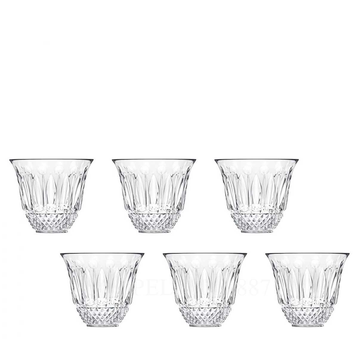 The Saint Louis Tommy Set of 2 Flared Tumblers Clear reflects the timeless elegance of the iconic Tommy collection, first introduced in 1928 during the legendary Versailles dinner honoring King George VI. Each glass requires the work of ten master glassblowers and five cutters, showcasing the extraordinary craftsmanship that has defined Saint Louis crystal for centuries. Featuring a refined flared lip, these tumblers enhance the aromas of both hot and cold drinks, while their delicately cut crystal parison rests comfortably in the hand. The decorative star base, diamond cuts, bevels, and chains create a brilliant play of light, making every beverage a luxurious experience.