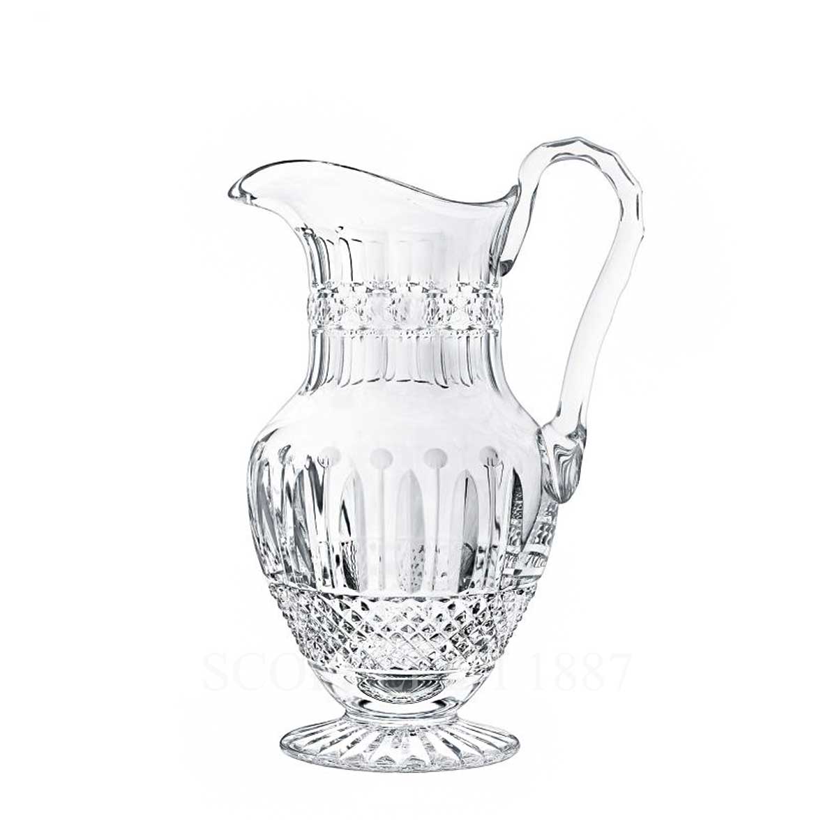 The Saint Louis Tommy Water Jag Clear is a masterful piece from the iconic Tommy collection, originally created in 1928 for a legendary dinner at the Hall of Mirrors in the Château de Versailles for King George VI. Each piece is mouthblown and hand-cut by skilled artisans, requiring ten glassblowers and five cutters over ten days to achieve the intricate design. From its star-shaped base to its diamond cuts, bevels, chains, and bead-cut hurricanes, the Tommy Water Jag reflects the dexterity and craftsmanship of Saint Louis. This exceptional creation transforms ordinary dining into an extraordinary experience, making it both functional and a luxurious display of French crystal artistry.