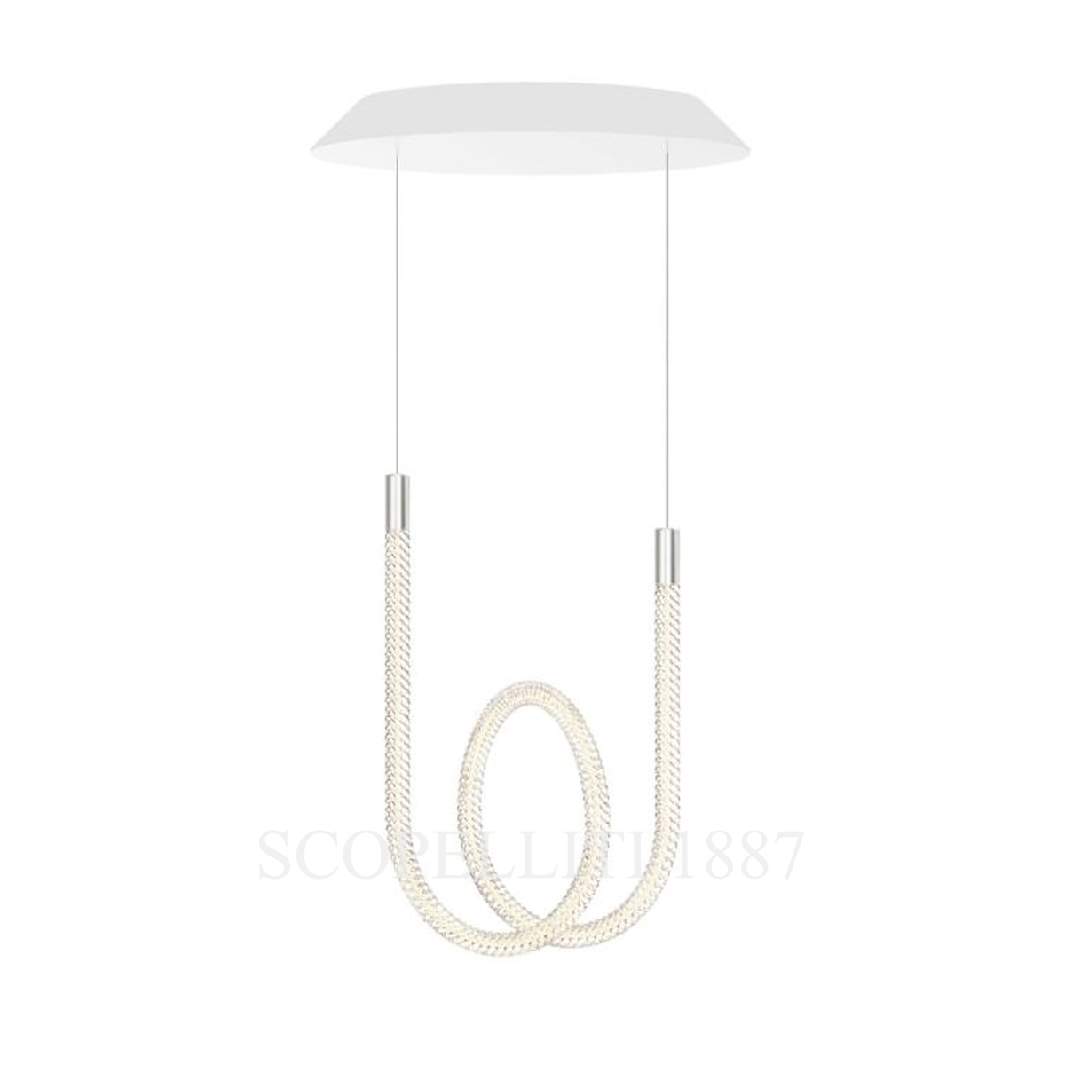 The Saint Louis Torsade 1 Light Pendant is an elegant lighting fixture that unites modern design with exceptional craftsmanship. This adjustable LED pendant is perfect for creating the ideal ambiance, whether illuminating a cozy nook or adding a sophisticated accent above a table. Each piece showcases the artistry of Saint Louis artisans with its beautifully twisted crystal arms. The clear crystal arms can be arranged in U-shaped or looped forms, offering versatility and a striking visual presence. The pendant features metal-sheathed cables and lightly brushed silver-colored aluminum accents on end caps and hooks, combining durability with refined elegance. Fully dimmable from 0 to 100%, the Torsade 1 Light Pendant allows complete control over lighting intensity, making it ideal for various moods and settings. Designed to enhance a wide range of interior styles, this pendant blends functionality and luxurious design, creating a captivating focal point.