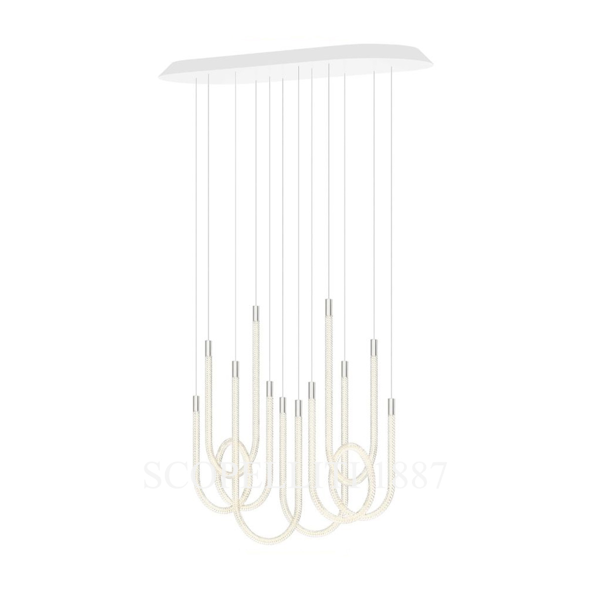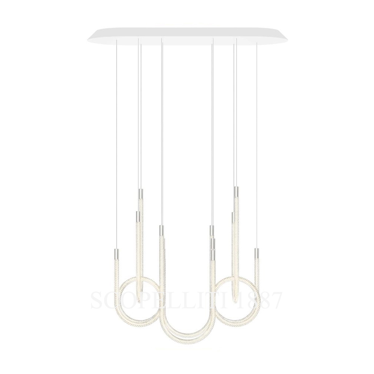 The Saint Louis Torsade 6 Light Pendant Tall is an exquisite lighting fixture that unites modern elegance with the mastery of French crystal craftsmanship. Its twisted crystal arms, arranged in U-shaped or looped forms, create a dynamic and captivating visual display. Enhanced with advanced LED technology, the pendant’s brushed silver-colored aluminum accents on end caps, hooks, and dimmers add a contemporary touch. Suspended on durable metal-sheathed cables, this tall pendant ensures both elegance and stability. Fully dimmable from 0 to 100%, it allows you to customize the ambiance for any occasion, making it ideal for intimate spaces or above low tables. The Torsade 6 Light Pendant Tall harmonizes functionality and sophistication, becoming a focal point in any refined interior.