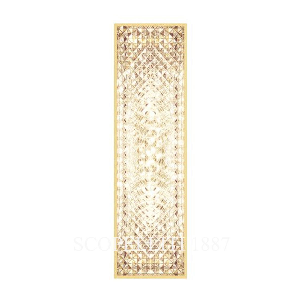 The Saint Louis Vibration Sconce Gold, designed by Eric Gizard, celebrates movement and light through its diamond-cut crystal pattern. The elegant curves of Saint-Louis crystal contrast beautifully with the sleek gold and aluminium structure, creating a minimalist and modern aesthetic. Handcrafted by skilled artisans, this sconce produces a soft, vibrant glow that enhances contemporary interiors with subtle sophistication. Part of the Vibration collection, it can be customized in chrome, bronze, or gold to perfectly suit your space.