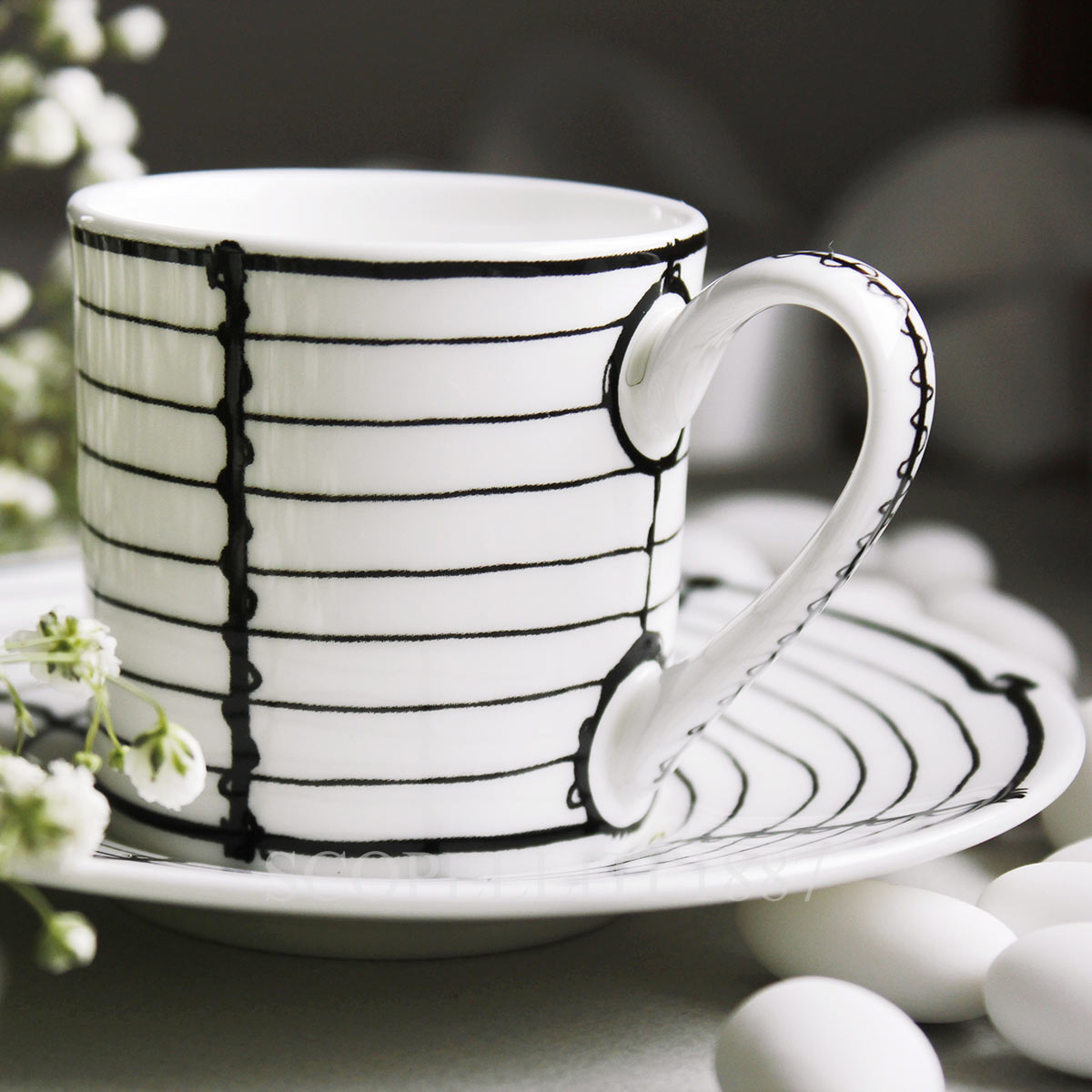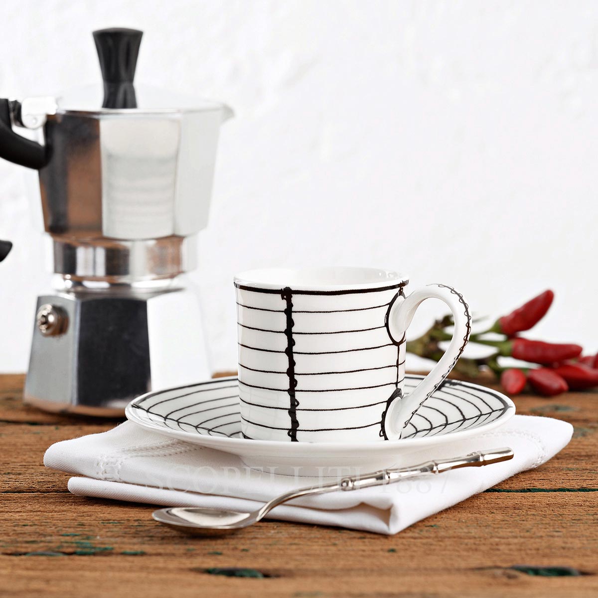 Experience the perfect espresso moment with the Taitù Ferri Espresso Cup with Saucer set. Part of the Ferri collection, this exquisite set includes four elegantly crafted cups and saucers, made from Fine Bone China for a refined and durable design. These espresso cups are ideal for serving your favorite espresso or small coffee beverages. The set comes beautifully packaged in a gift box, making it an excellent gift for coffee lovers or those who appreciate fine tableware. Blending timeless elegance with practicality, the Taitù Milano Ferri Espresso Cup with Saucer set is dishwasher and microwave safe, ensuring both beauty and convenience. Enjoy your coffee moments in style and sophistication with the Taitù Milano Ferri Espresso Cup with Saucer set!