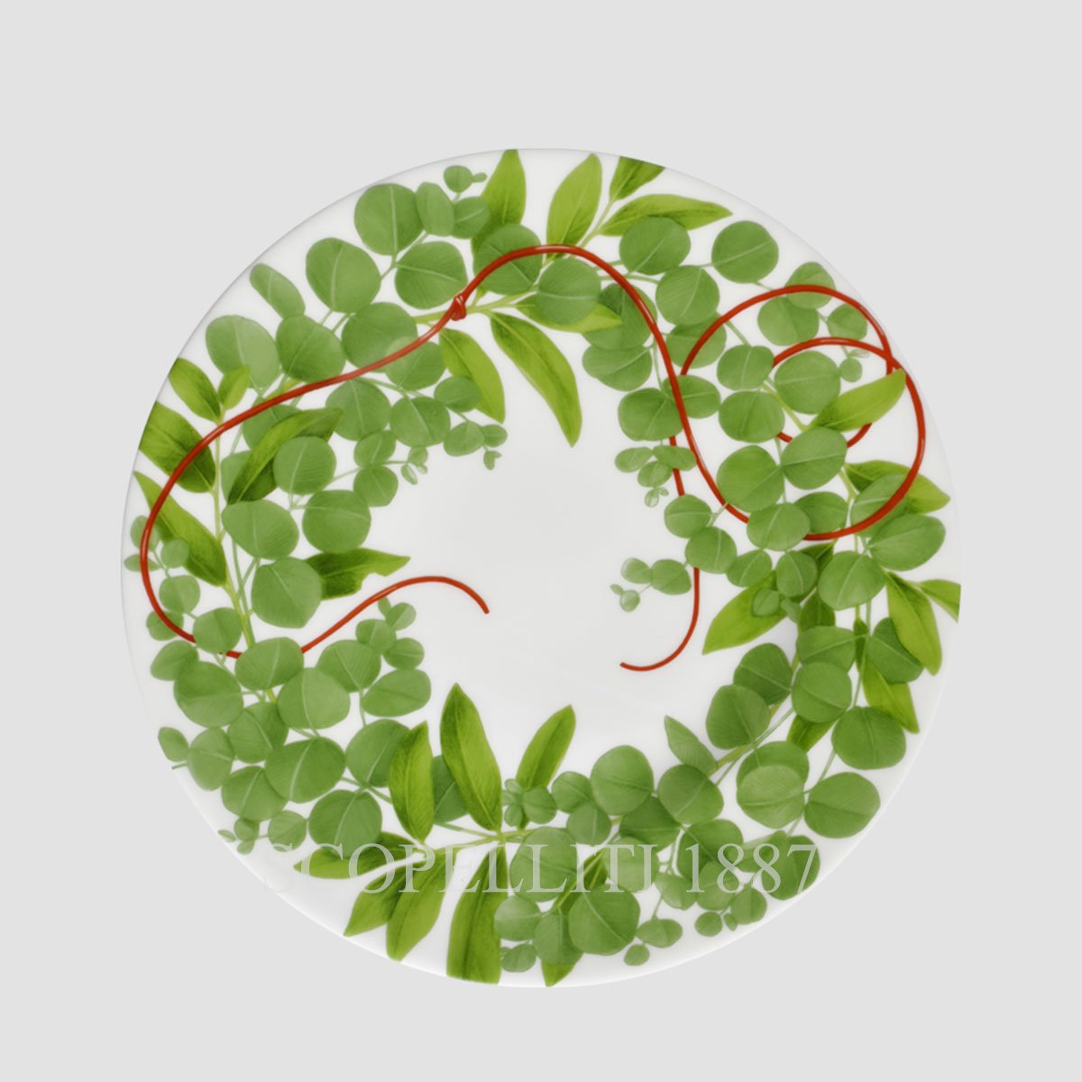 A delicate Fil Rouge wreath intertwines with Eucalyptus and Laurel leaves, creating a serene and sophisticated design. The dominant green tones evoke a sense of calm, while subtle red accents add warmth and festive charm. As part of the Fil Rouge macro-concept, the Bacche, Foglie, and Nodi collections offer beauty for every season, while also bringing the magic of Christmas to your table. Designed for endless Mix&Match possibilities, these pieces harmonize effortlessly with other Taitù collections, allowing you to create a unique and personalized setting.