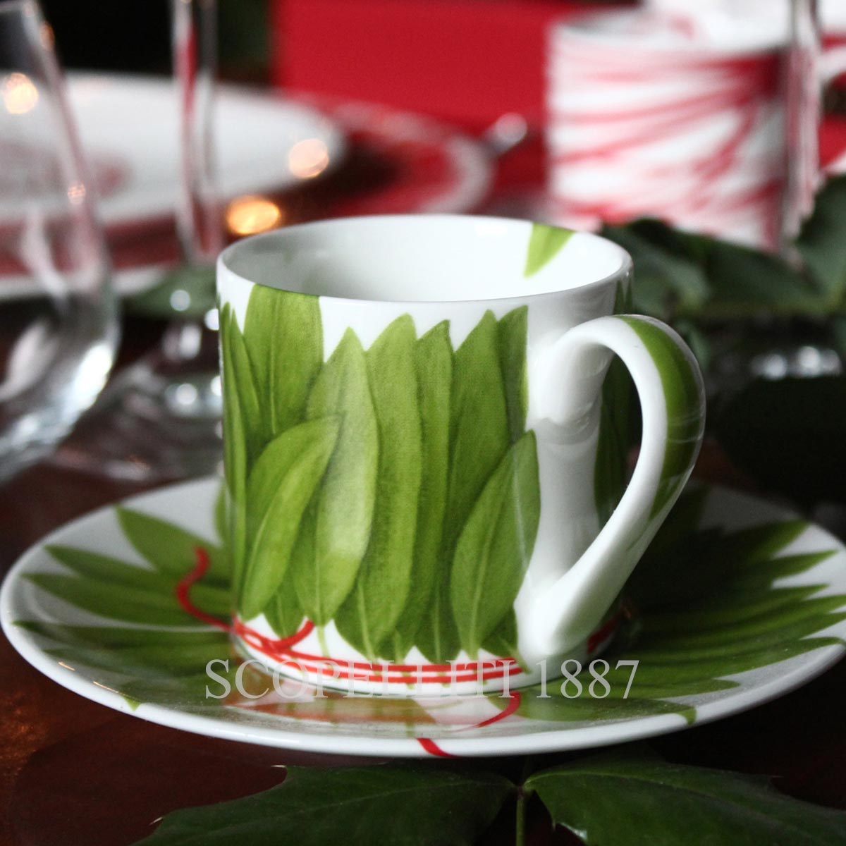 Taitù Fil Rouge Foglie Espresso Cup with Saucer – Set of 2