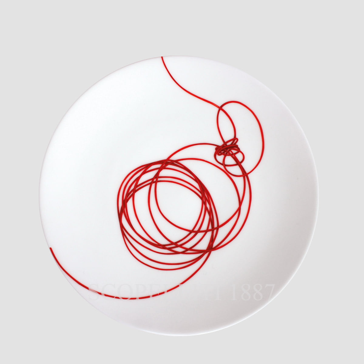 Bring elegance and charm to your table with the Taitù Fil Rouge Nodi Dessert Plate. Made from Fine Bone China, this beautifully designed plate features an intricate red ribbon motif, symbolizing unity and connection. It is perfect for serving desserts, pastries, or appetizers with a refined touch. Microwave and dishwasher safe, it offers both practicality and style. The set includes four dessert plates, elegantly packaged in a gift box, making it a sophisticated gift choice or a stylish addition to your tableware collection.