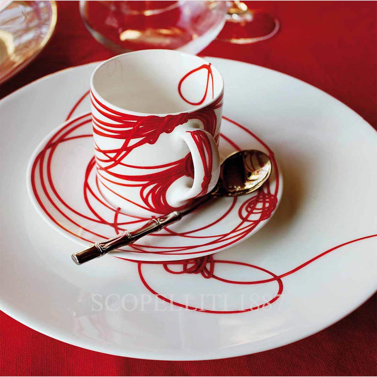 Red is the color of passion, love, and vitality. The Fil Rouge collection by Taitù embraces these emotions through four artistic designs: Bacche, Foglie, Musica, and Nodi. While perfect for every season, the signature red accents bring an extra touch of magic to the holiday table. The Fil Rouge macro-concept allows limitless Mix&Match possibilities, effortlessly coordinating with other Taitù collections for a unique and dynamic table setting.