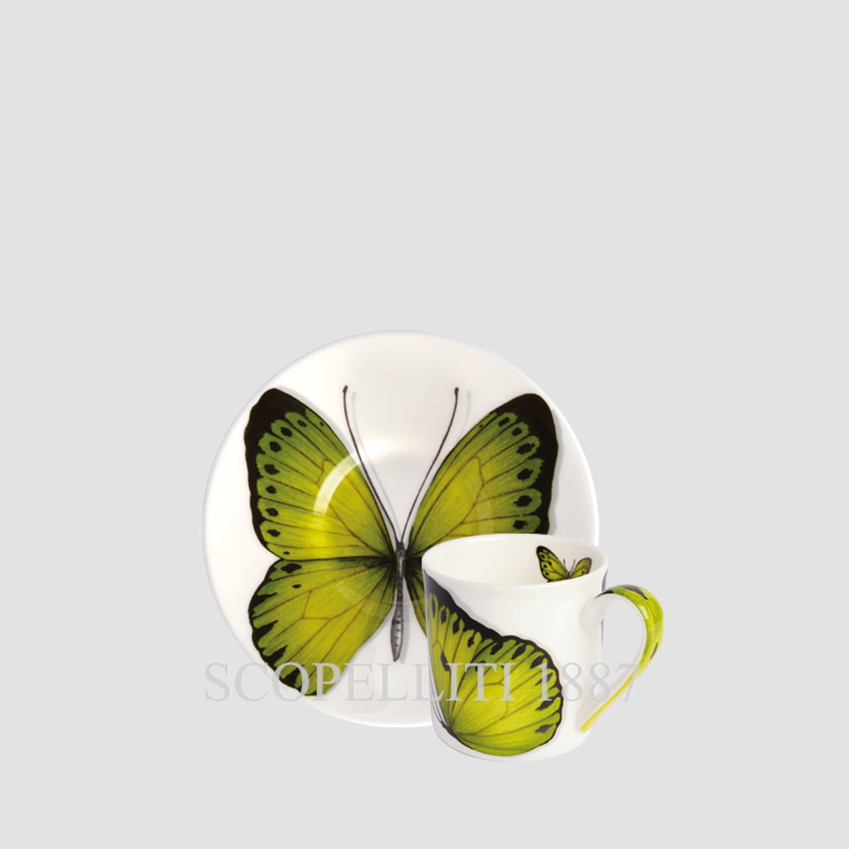 Elevate your coffee experience with the Taitù Freedom Espresso Cups. This stunning set of four espresso cups with saucers, adorned with delicate butterfly motifs, brings a touch of nature and artistry to your daily coffee rituals. With their vibrant, nature-inspired designs, these cups embody a manifesto of freedom, capturing the lightness and beauty of butterflies. Their artistic elegance offers the perfect opportunity to create a refined and ever-changing table setting, celebrating creativity with every sip. Perfect for gifting or enhancing your own coffee collection, the Taitù Freedom Espresso Cups combine artistry, nature, and the joy of coffee to offer endless creative possibilities for your table setting. The Taitù Freedom Collection is a celebration of color, nature, and individuality. Inspired by the beauty of the natural world, this collection features an exquisite mix of leaves, flowers, fruits, vegetables, trees, herbs, and butterflies. Each piece embodies the spirit of freedom—the freedom to mix and match, creating a unique table setting every day. With its two thematic variations—color and natural elements—Freedom offers endless combinations, allowing you to express your personal style through ever-changing table arrangements. Ideal for those who seek originality and elegance, the Taitù Freedom Collection transforms every dining experience into a creative journey.
