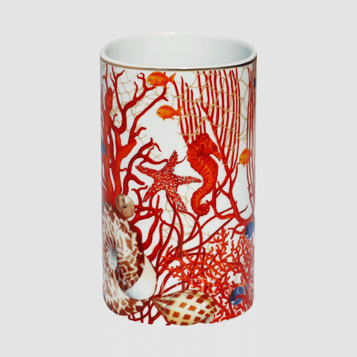 Bring the wild beauty of the ocean into your home with the Taitù Luxury Mare Vase Large. Inspired by the vibrant underwater world, this Made in Italy masterpiece showcases a stunning marine design, where tropical fish, nautilus, and starfish glide among intricate coral reefs. The cylindrical shape enhances its elegant presence, making it a statement piece for any interior. Crafted with exceptional attention to detail, this vase blends artistic craftsmanship with poetic vision, turning every glance into a journey through the eternal charm of the sea. Whether displayed as a standalone décor piece or used to hold floral arrangements, it brings an exclusive touch of oceanic luxury to any setting.