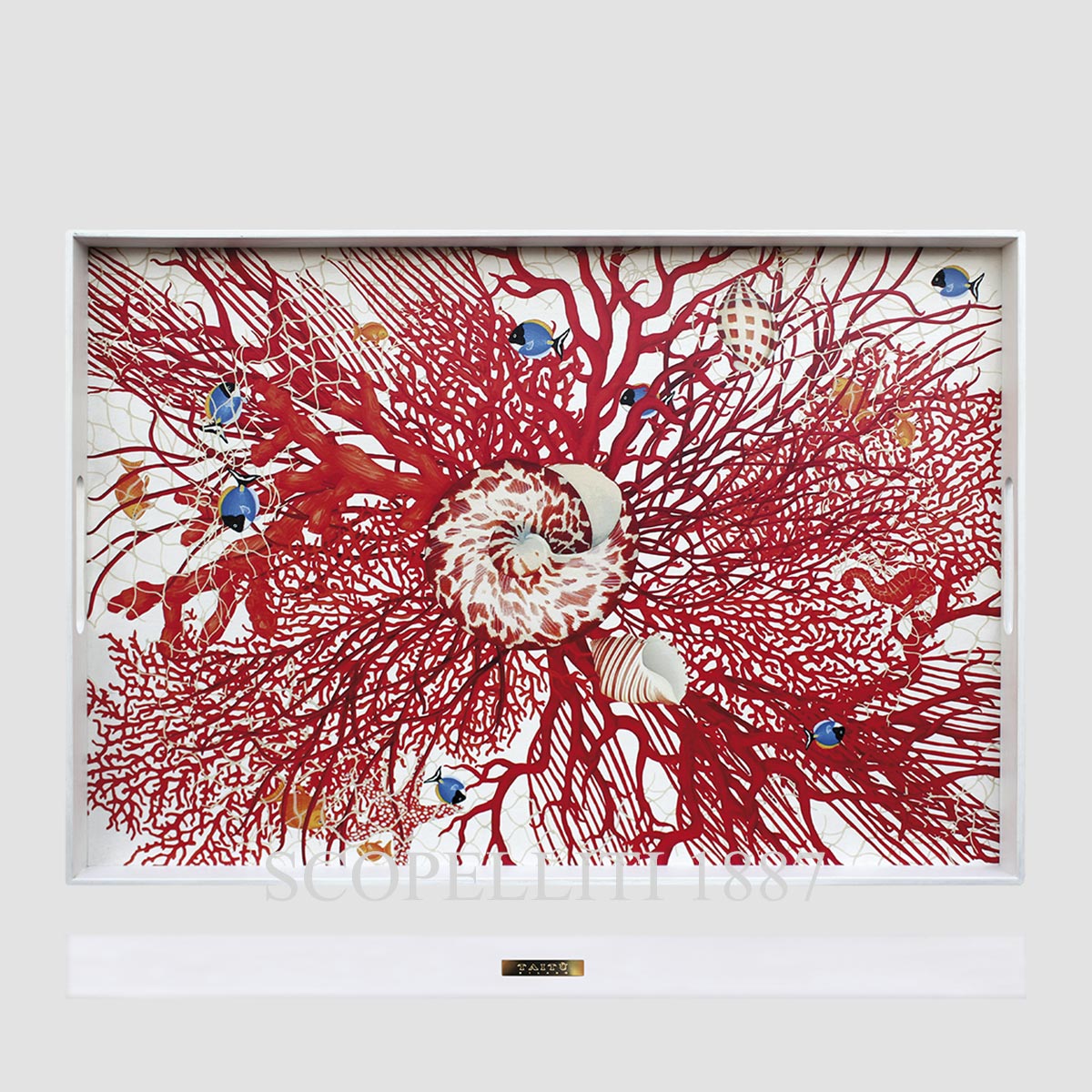 The Taitù Mare Rectangular Tray is a stunning piece that captures the essence of the ocean’s beauty. Inspired by the vibrant life of coral reefs, tropical fish, and the serene movement of the sea, this tray brings the wild charm of the ocean right to your table. With meticulous craftsmanship, this tray offers both functionality and visual delight, making it a perfect addition to any coastal-inspired home or elegant living space. Crafted from high-quality birch wood, this tray is durable and offers a timeless design. It comes with a gift box, making it an ideal present for those who appreciate fine craftsmanship and nature-inspired design. Although beautiful, it is recommended to use mild cleaning products and a soft cloth to preserve its finish, as the tray is not safe for food contact. The Taitù Mare Collection is a tribute to the beauty and mystique of the ocean. Each piece is thoughtfully designed to evoke the vibrant marine world, adding a touch of elegance and nature-inspired charm to any space.
