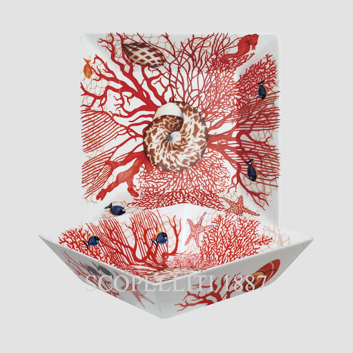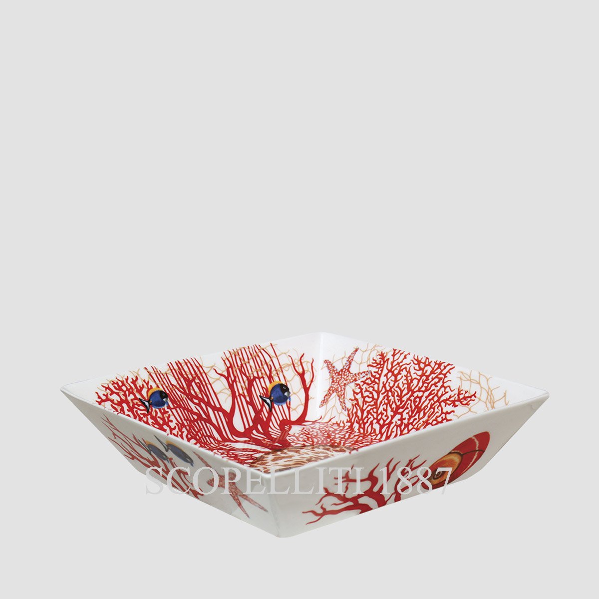 Immerse yourself in the timeless beauty of the ocean with the Taitù Mare Square Dish Large All-Purpose. Inspired by the richness of coral reefs, this versatile dish set showcases exquisite marine details, featuring tropical fish, nautilus, and starfish swimming among vibrant coral formations. Perfect for serving or as a decorative accent, it brings a touch of elegance and nature’s wonder to any table setting. Crafted with exceptional artistry, this Made in Italy set is both sophisticated and functional, making it an ideal gift for ocean lovers and collectors alike. Presented in an elegant gift box, it’s a must-have addition to the Mare Collection.