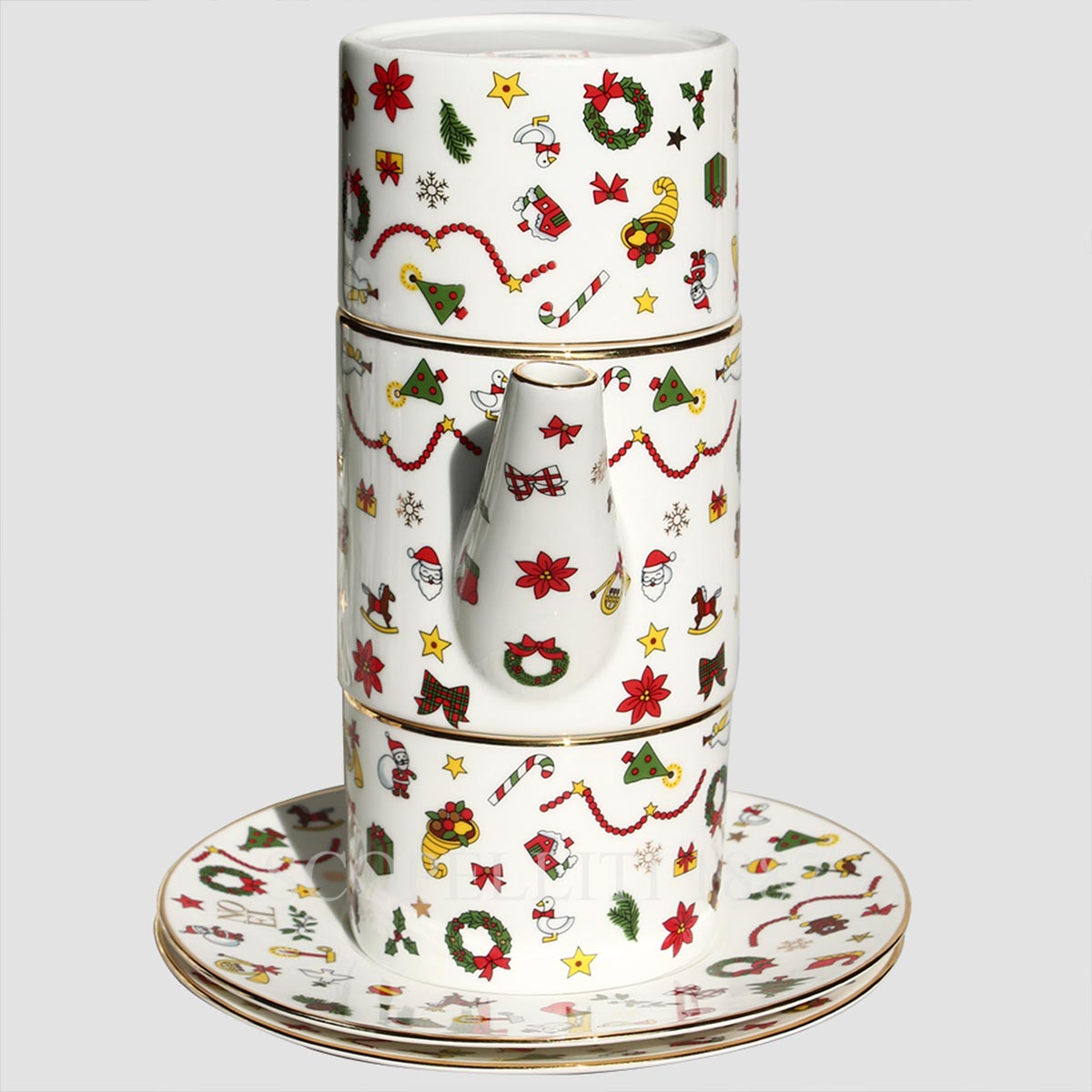 Indulge in a luxurious coffee experience with the Taitù Noel Oro Coffee for Two. This elegantly crafted set includes a teapot, two cups, and two saucers, all adorned with 24-karat gold detailing. Packaged in an elegant gift box, it is the perfect holiday gift or a refined addition to your festive table.