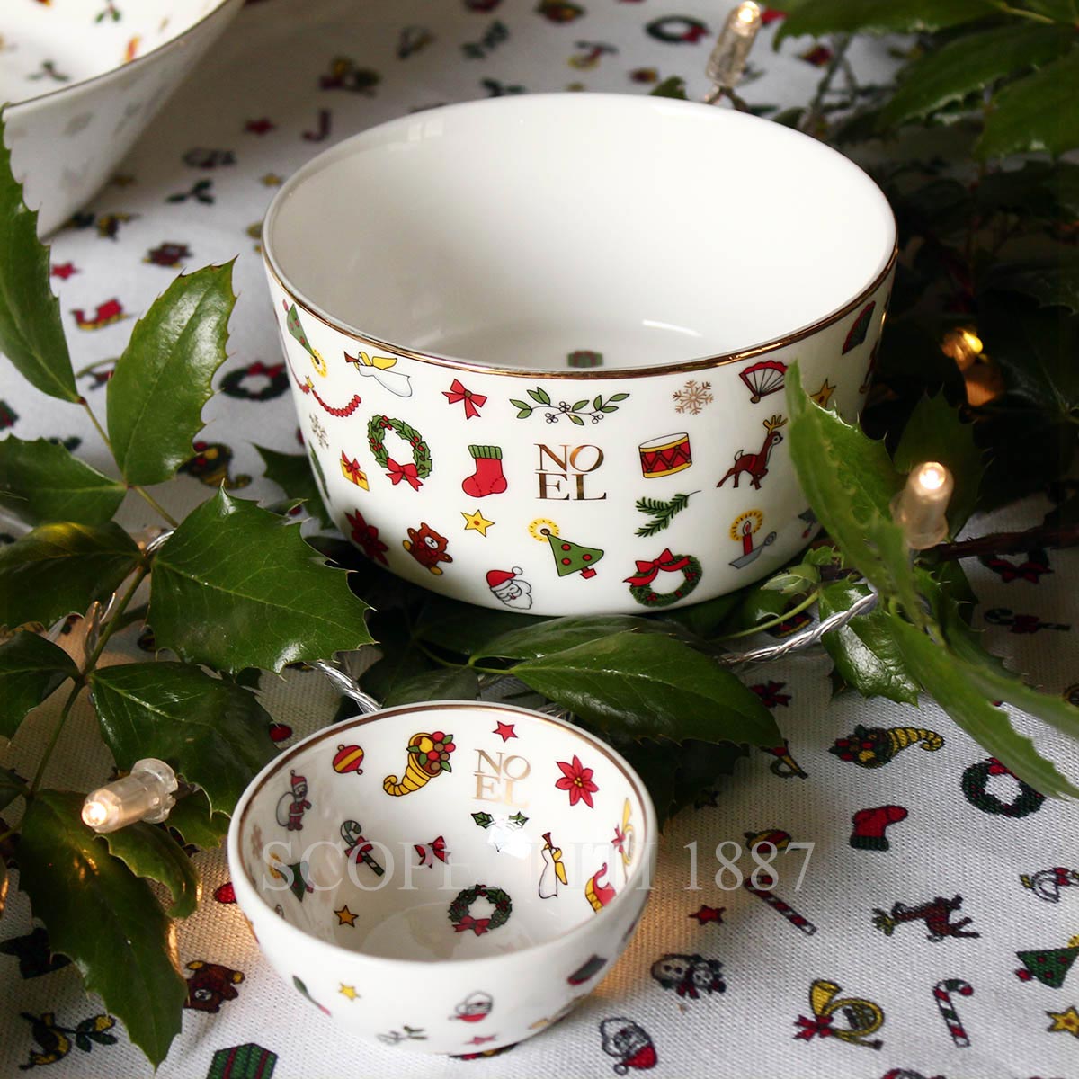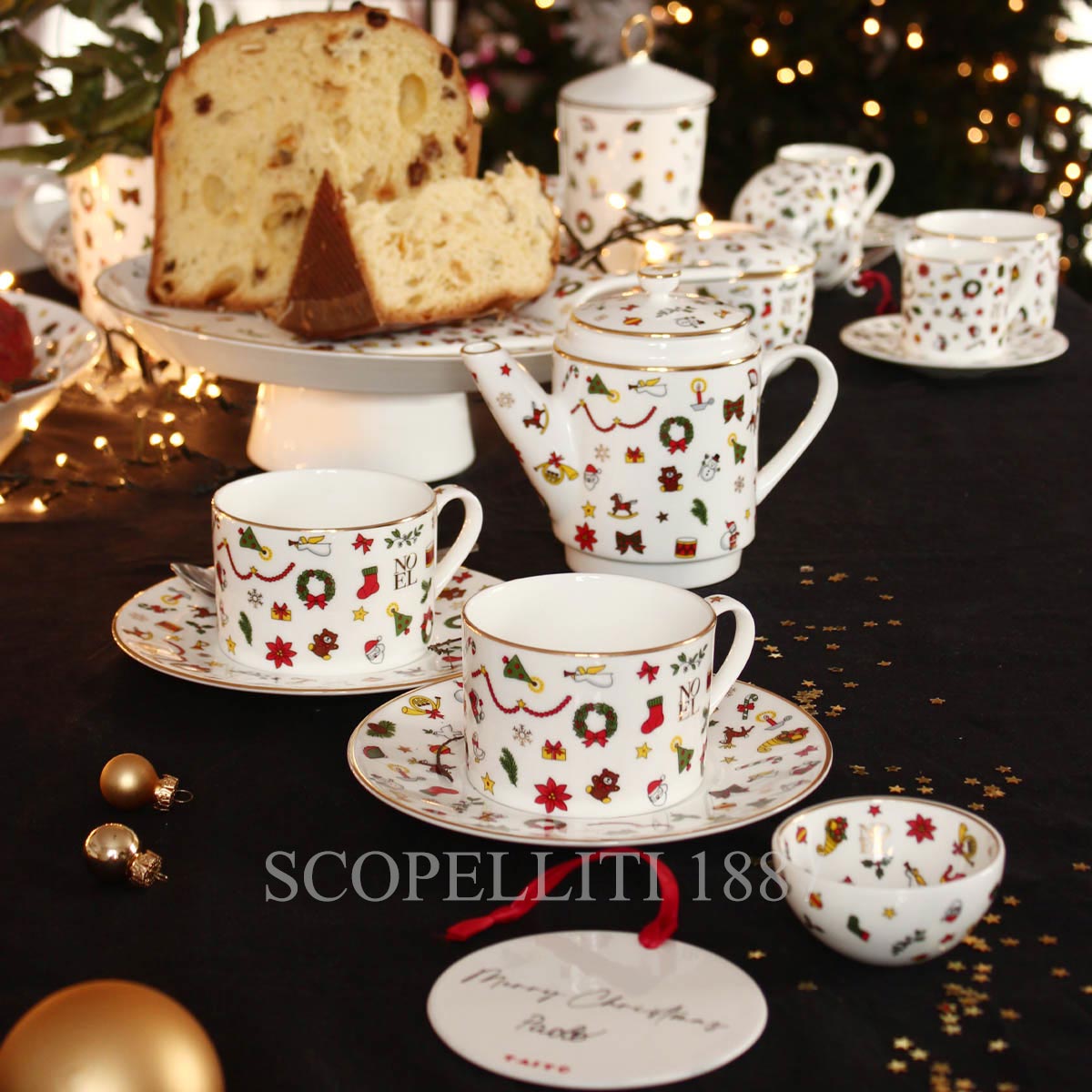 The Noel Oro Collection by Taitù redefines holiday elegance with luxurious gold detailing. Inspired by the enchanting magic of Christmas, this collection features artistic motifs, a luminous white base, and contemporary shapes that elevate seasonal dining. The NOEL logo, along with its delicate embellishments, creates a timeless festive ambiance.