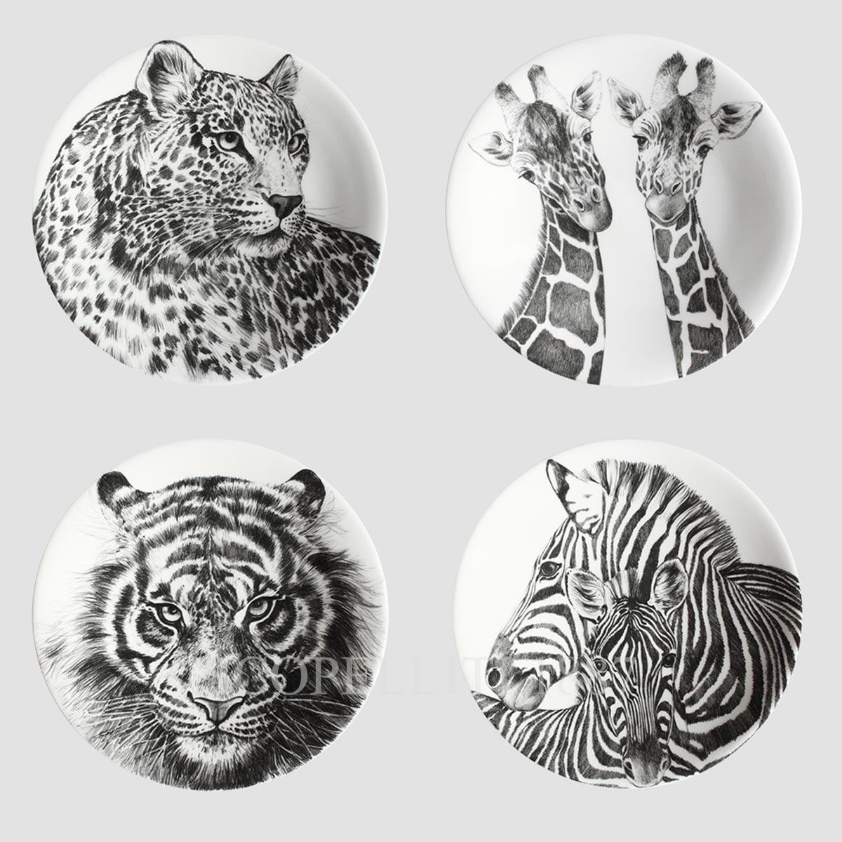 Indulge in the wild side of dining with the Taitù Wild Spirit Dessert Plates. This exquisite set of 4 plates beautifully captures the untamed spirit of the animal kingdom, featuring a bold design inspired by black and white tigers, leopards, zebras, and giraffes. WILD SPIRIT unleashes our free and primitive spirit through the alternation of these majestic animals, with creative close-up depictions that evolve into an optical geometric “texture.” These plates add an element of strength and elegance to your table setting, making them ideal for those who appreciate both nature’s beauty and artistic flair. Presented in a luxurious gift box, these dessert plates are the perfect addition to your collection or a thoughtful gift for someone special.