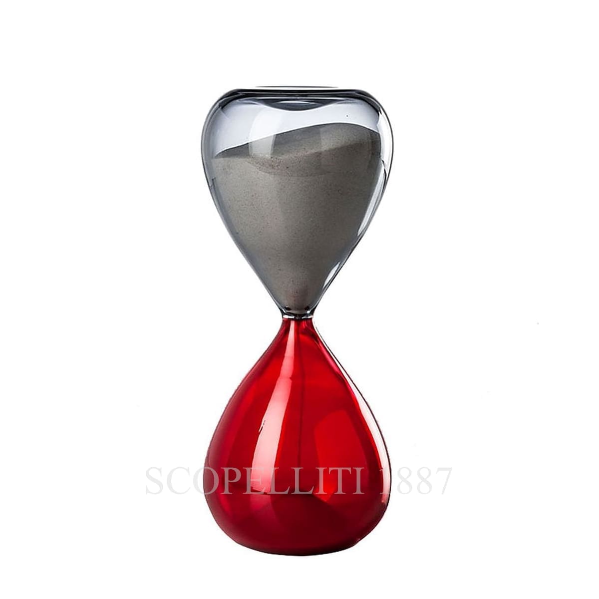 The Venini Clessidre Hourglass 420.06 Grape Red is a decorative clessidra made of Murano glass. It has a unique design with two rounded sections—one on top and one on the bottom—connected by a narrow center. The top part is in grape color, while the bottom is a red shade. It’s a stylish and artistic piece, that may be used as a decoration rather than a functional timer. The Venini Clessidra created by renowned designers Paolo Venini and Fulvio Bianconi, belongs to Venini’s collection of decorative glass objects. Known for its vibrant colors and blown glass craftsmanship, this decorative item represents timeless Venetian artistry.