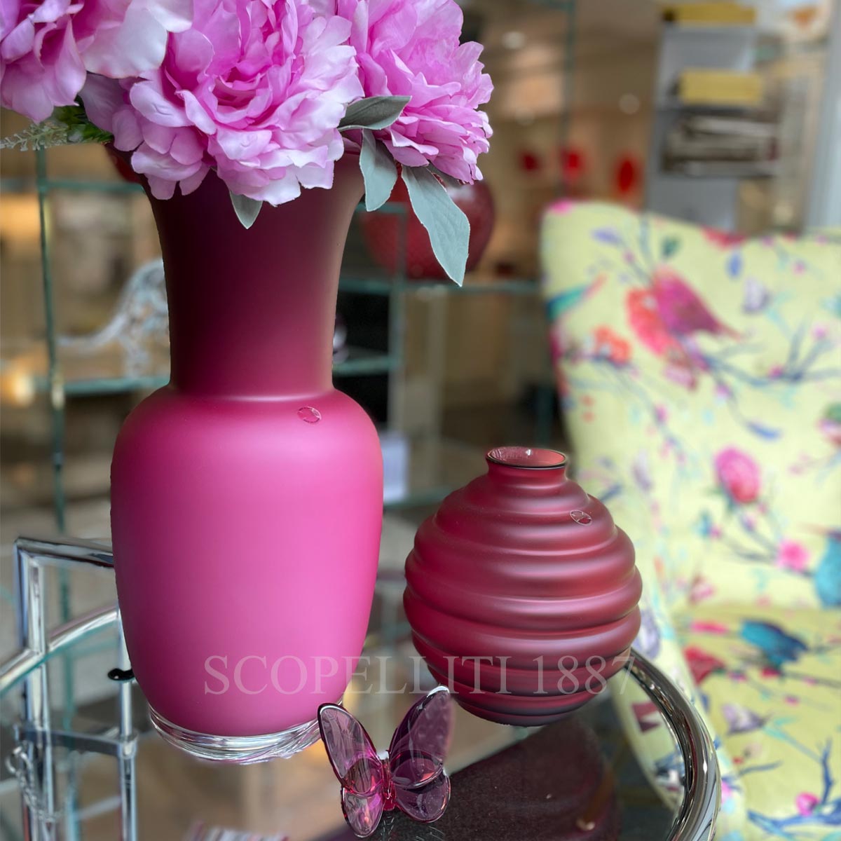 Order the Venini Deco Vase Magenta Transparent Sandblasted Small today and add a touch of elegance to your collection or surprise a loved one with this exquisite gift!