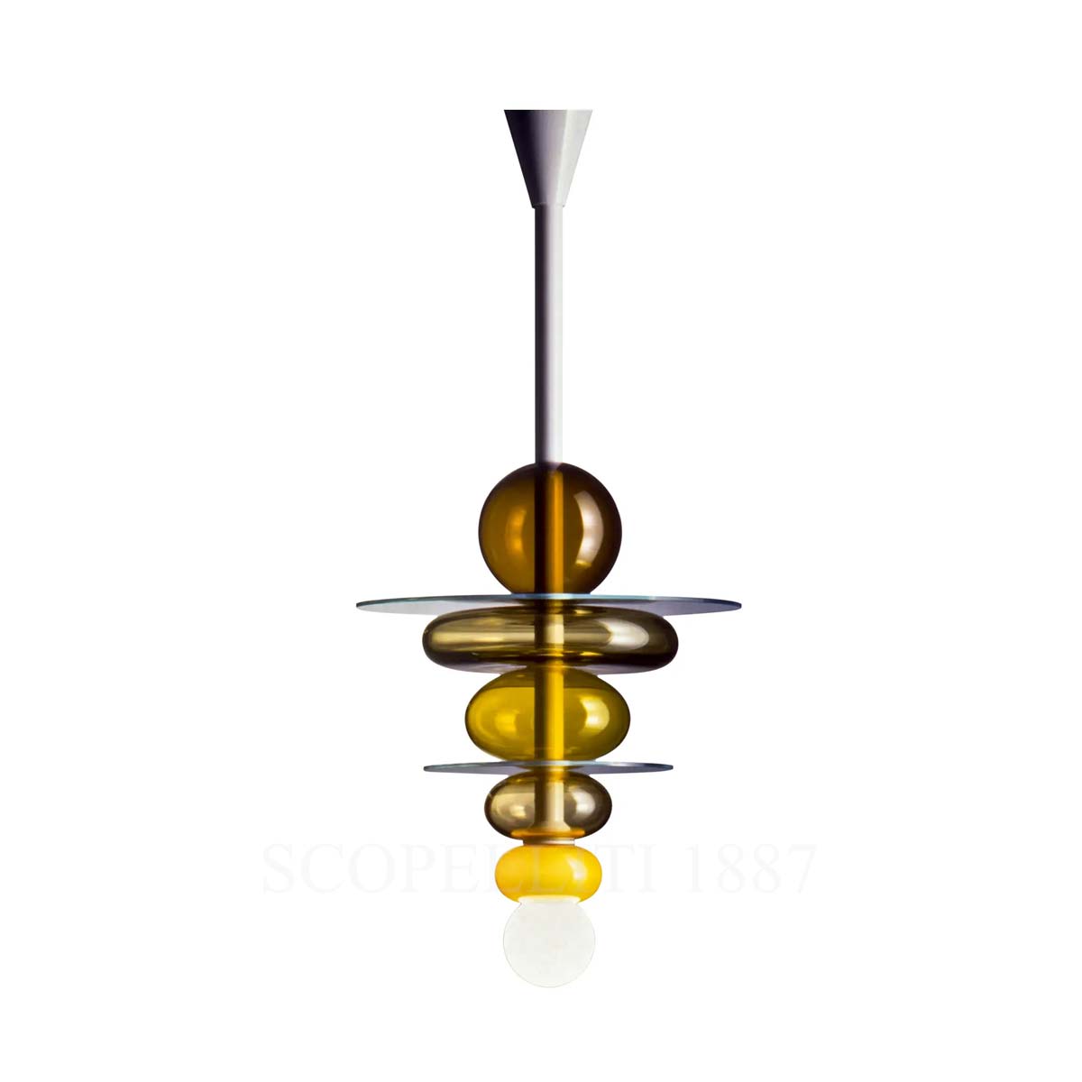 The Venini Firenze Chandelier is a striking piece that beautifully marries simple geometric forms with vibrant color contrasts, a characteristic hallmark of Ettore Sottsass’s designs. This approach of combining fundamental shapes to create complex structures is seen in the dynamic, eye-catching suspensions within the Firenze collection. The Venini Firenze Chandelier features blown glass circular elements, each differing in size and subtle variations in hue, giving it a unique, layered aesthetic. The contrast of these colorful glass pieces with clear crystal discs enhances its vibrant yet refined presence. Crafted with a white lacquered metal structure, the Venini Firenze Chandelier not only exudes elegance but also brings a modern, artistic flair to any space. Designed to be a captivating focal point, the Venini Firenze Chandelier embodies both contemporary craftsmanship and the rich glassmaking tradition of Murano, creating a statement that is ideal for both residential and professional interiors.