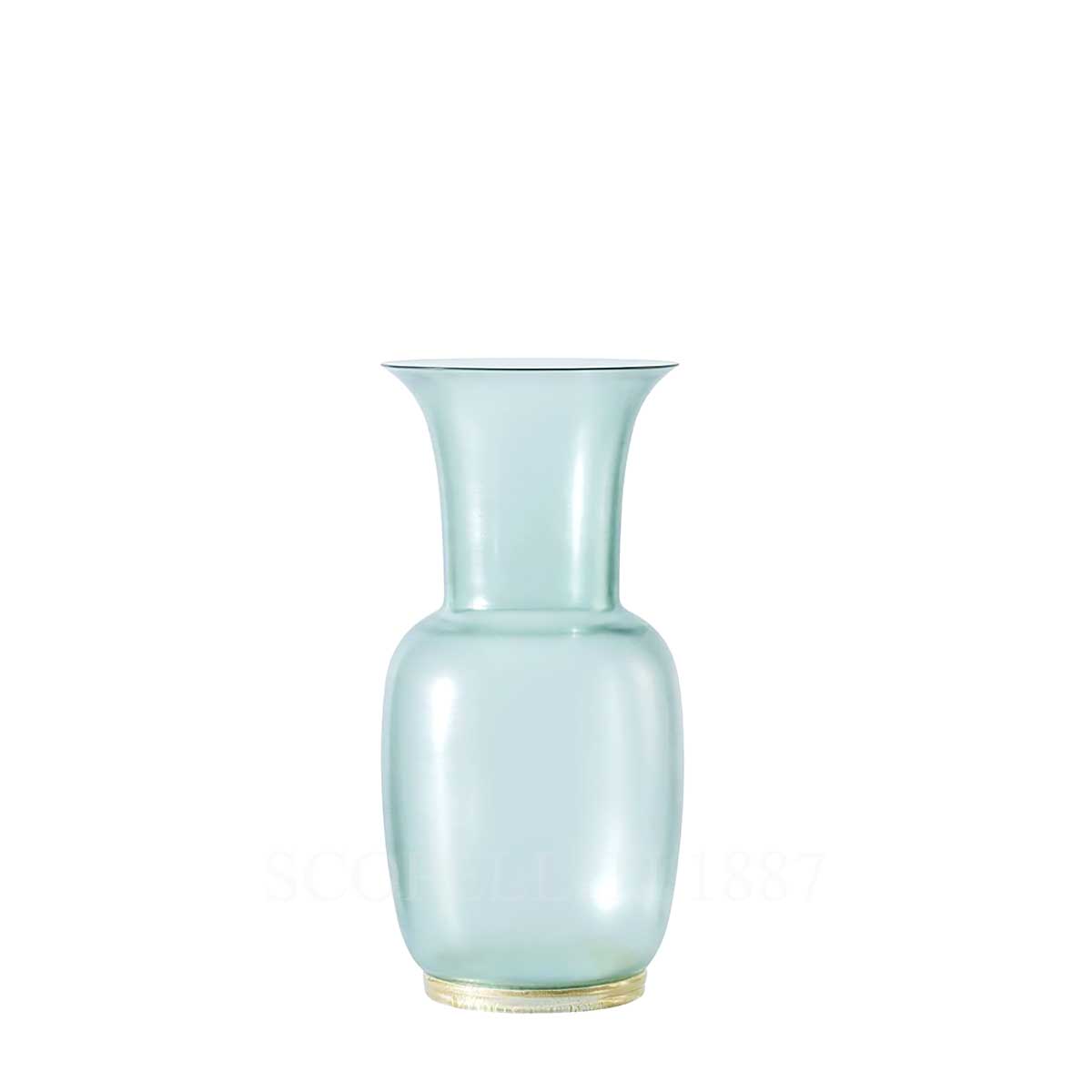 The Venini Opalino vase in satin Rio green is available in three sizes: