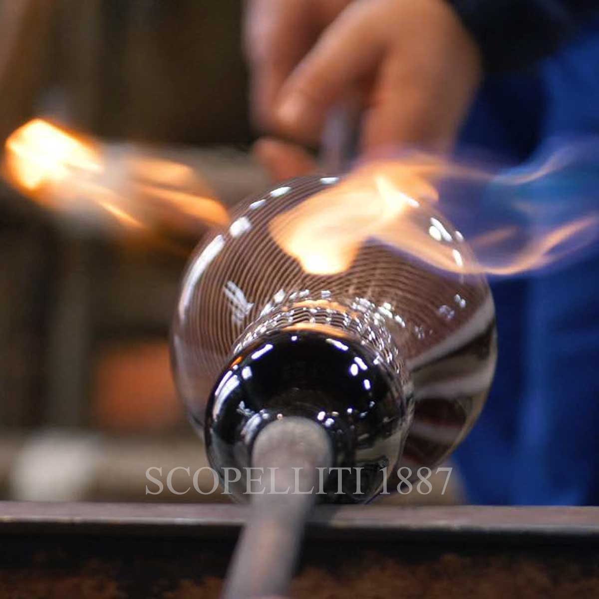 Their partnership started in 1997 with the delicacy of a blown glass vase and the allure of the Versace label, now reproposed in 2021 with three works of the V.V.V. collection enriched by the Maison Versace’s iconic transparent glass and gold leaf “Medusa”. Each Venini creation is one-off, where the Designer excellence and the magic of the furnace are expressed in a unique object that embodies the full value of the excellence of Italian manufacturing. Foamed padding inside, to protect the piece. Foam bag liner with personalised black fabric bag.