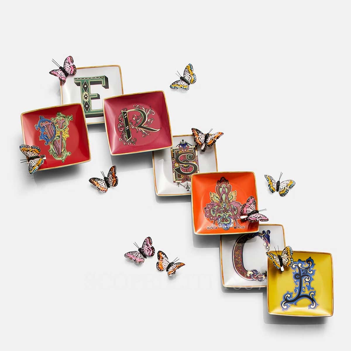 Made from high-quality porcelain, each dish has a classic design inspired by the Versace family’s “South Beach Stories” book. The plates feature a letter surrounded by ornate Barocco patterns, making them a great decorative piece for your coffee table. Versace’s alphabet plates bring together tradition and holiday spirit, featuring a design inspired by their Spring Summer 1992 collection with baroque lettering, gold leaves, and festive details like holly and mistletoe. These 12 cm dishes aren’t just for display—they can be used in many ways around the home. Use them as a key holder, butter dish, coaster, desk organizer, or even a personalized placeholder for guests. Get creative and add a touch of Versace to everyday life.