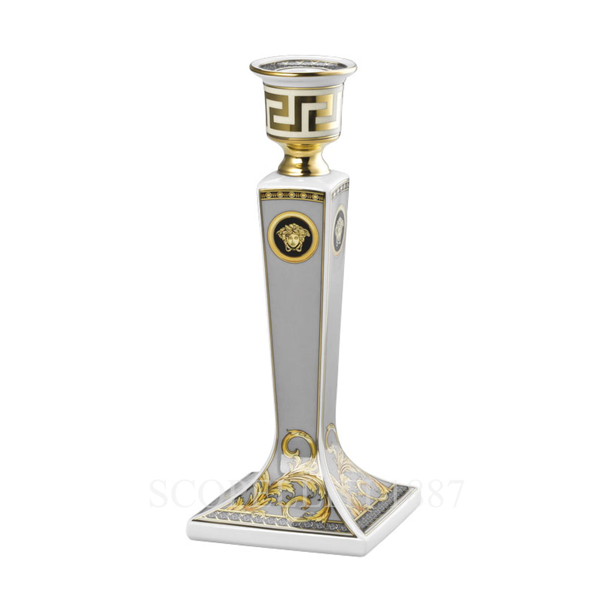 The Versace Candleholder Prestige Gala is a true statement piece, designed to elevate any space with its sophisticated and luxurious appeal. Crafted from fine porcelain, it features intricate detailing and rich gold accents that speak to Versace’s iconic craftsmanship. Its sleek design, balanced with opulent features, makes it a perfect addition to your tableware or home furnishings, creating an atmosphere of refined elegance. Whether used as a centerpiece during intimate gatherings or as a standalone accent, this candleholder will complement any surroundings with its timeless style.