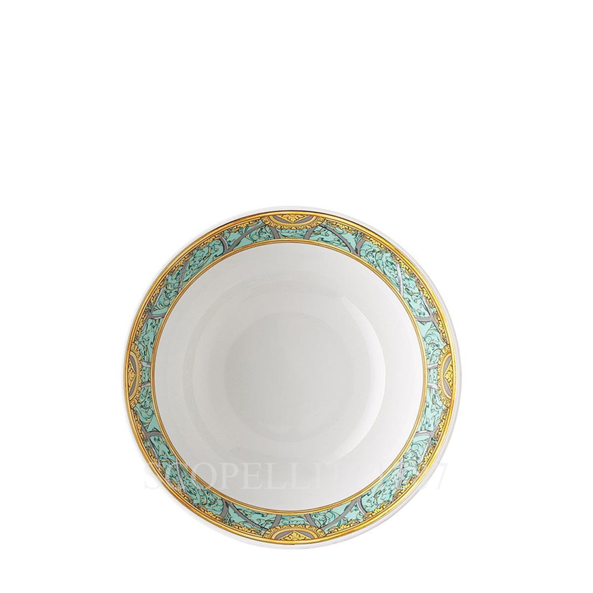 The Versace Cereal Bowl 15 cm Scala del Palazzo Green brings a touch of luxury to your table with its exquisite design, making it perfect for both everyday use and special occasions. Its elegant porcelain craftsmanship elevates any meal, whether serving cereal, fruit, or snacks.