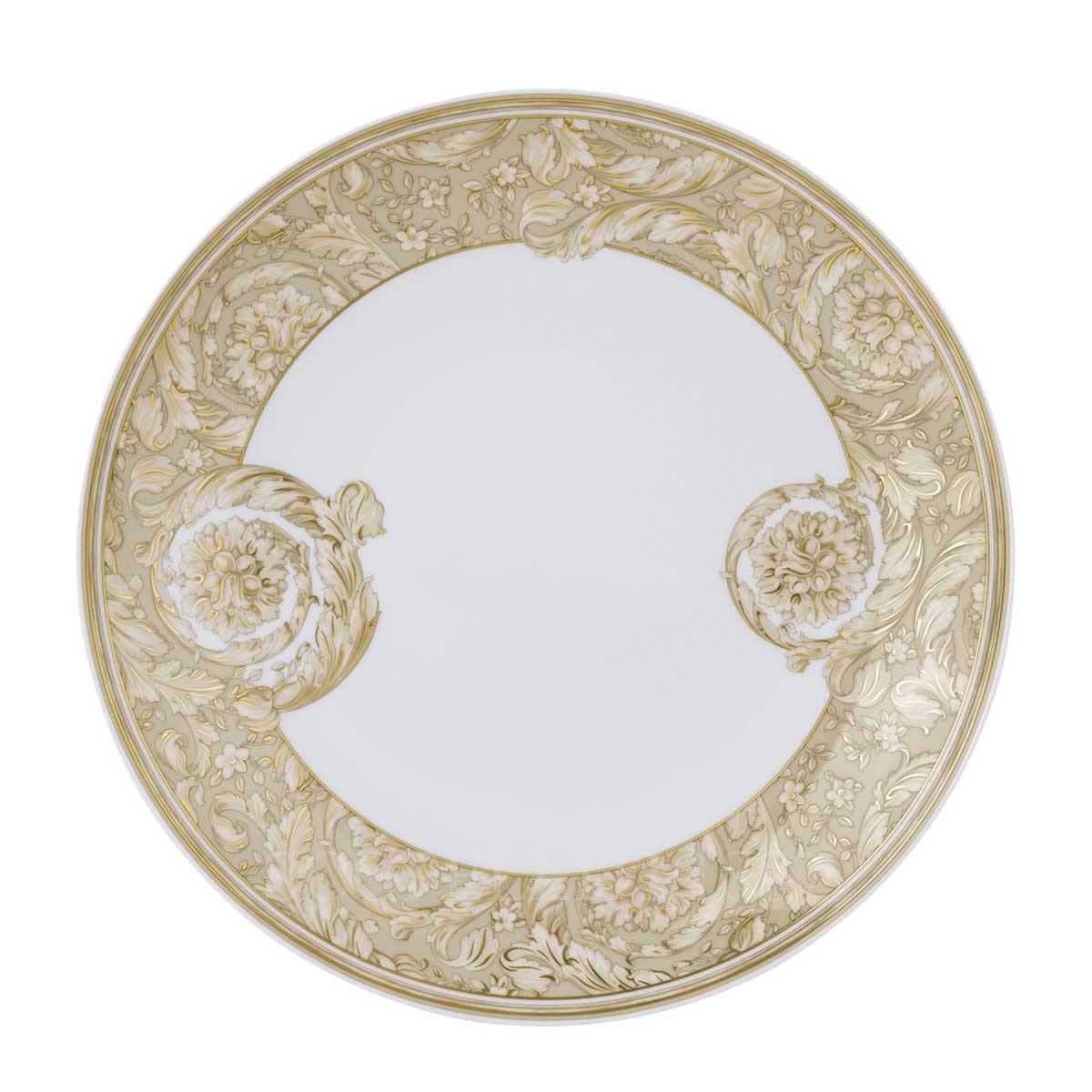 The Versace Dinner Plate Barocco Beige of 28 cm is a luxurious addition to any table setting, featuring a sophisticated beige base with signature golden accents.