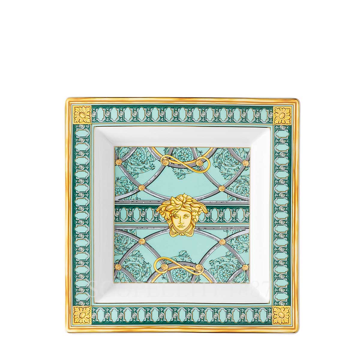 The Versace Dish 22 cm Scala del Palazzo Green is a true masterpiece that brings luxury and sophistication to any dining experience. Perfect for serving main courses or as an elegant display piece, this dish adds a touch of refinement to every meal, whether for intimate gatherings or grand occasions.